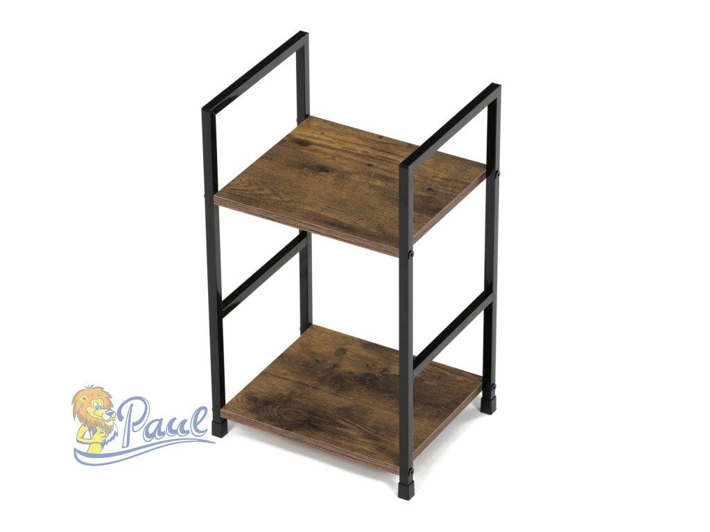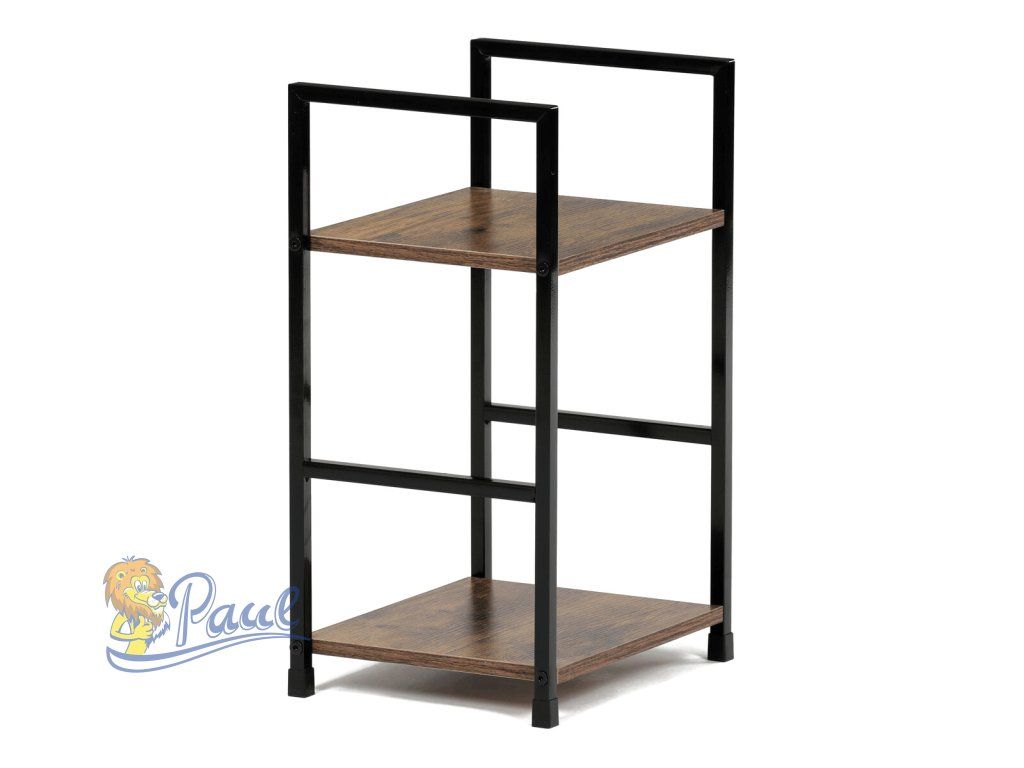 Regál, 2 police, dekor staré dřevo, MDF, černý lak