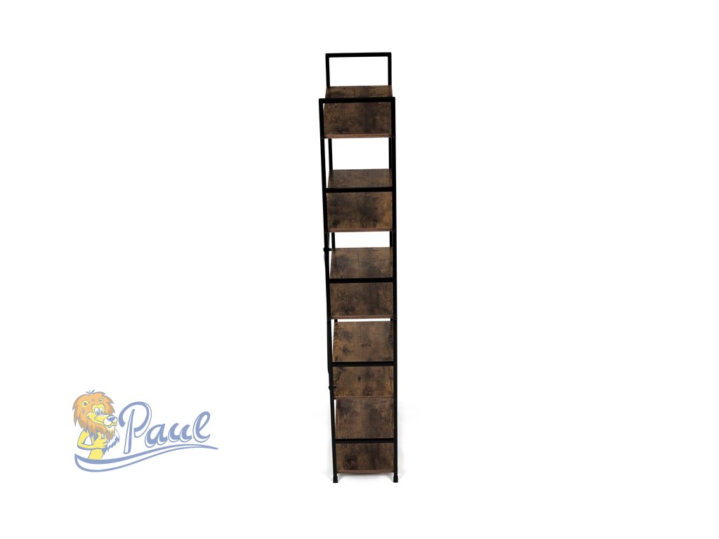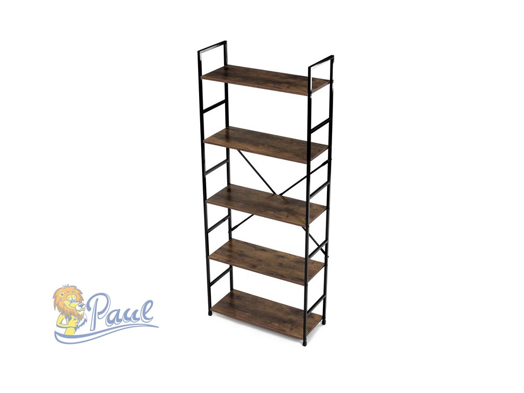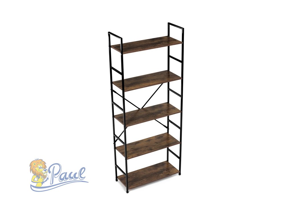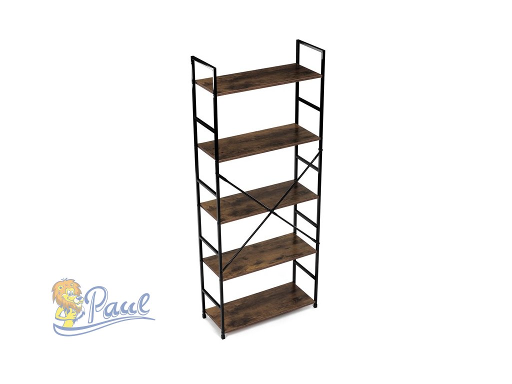 Regál, 5 polic, dekor staré dřevo, MDF, černý lak