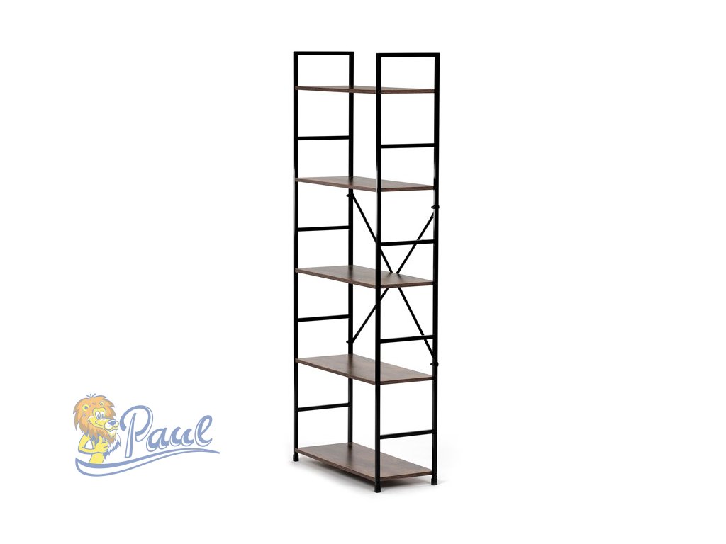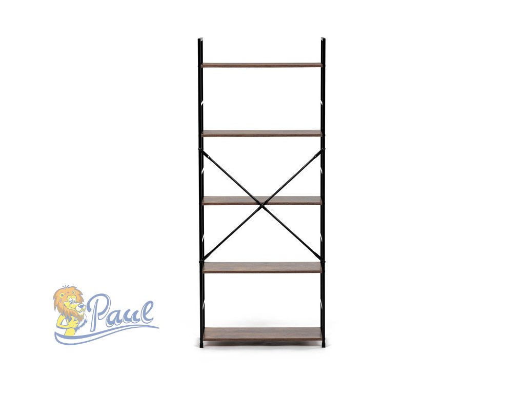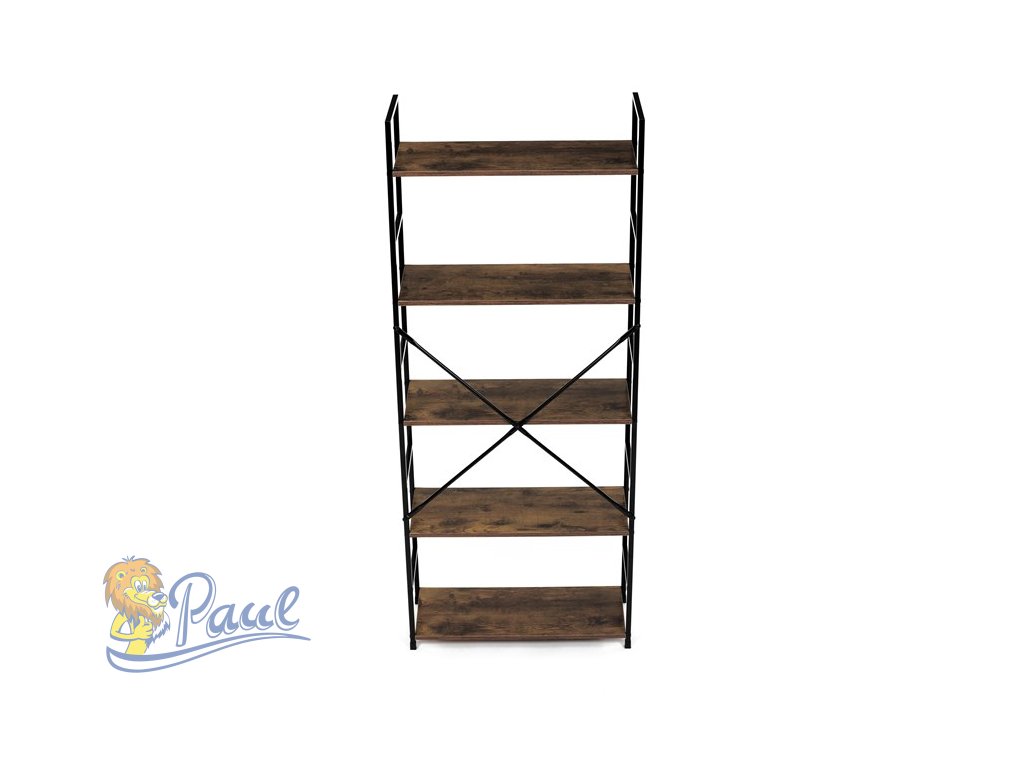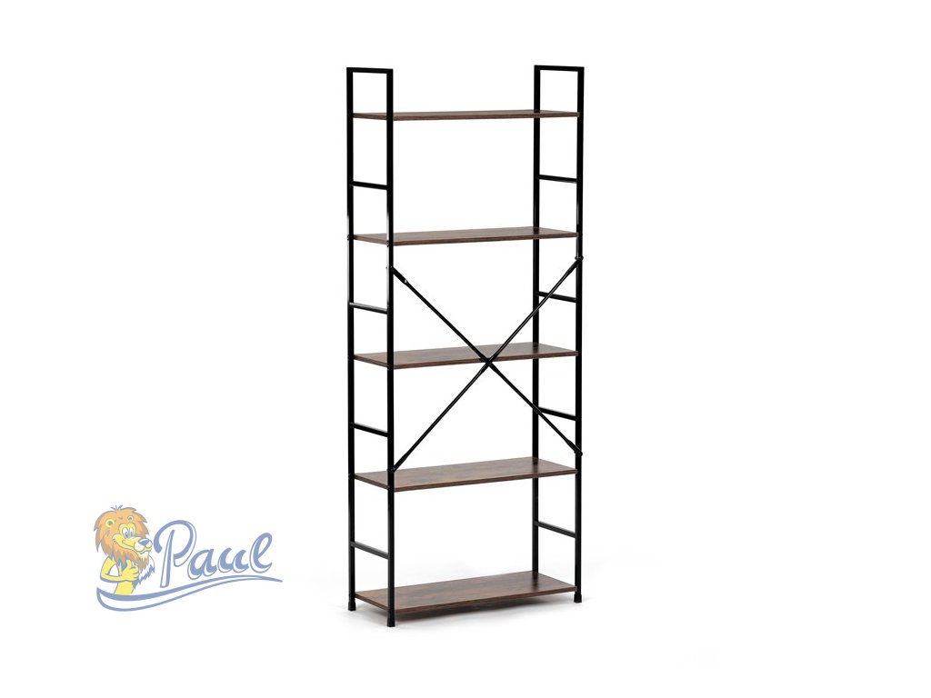 Regál, 5 polic, dekor staré dřevo, MDF, černý lak