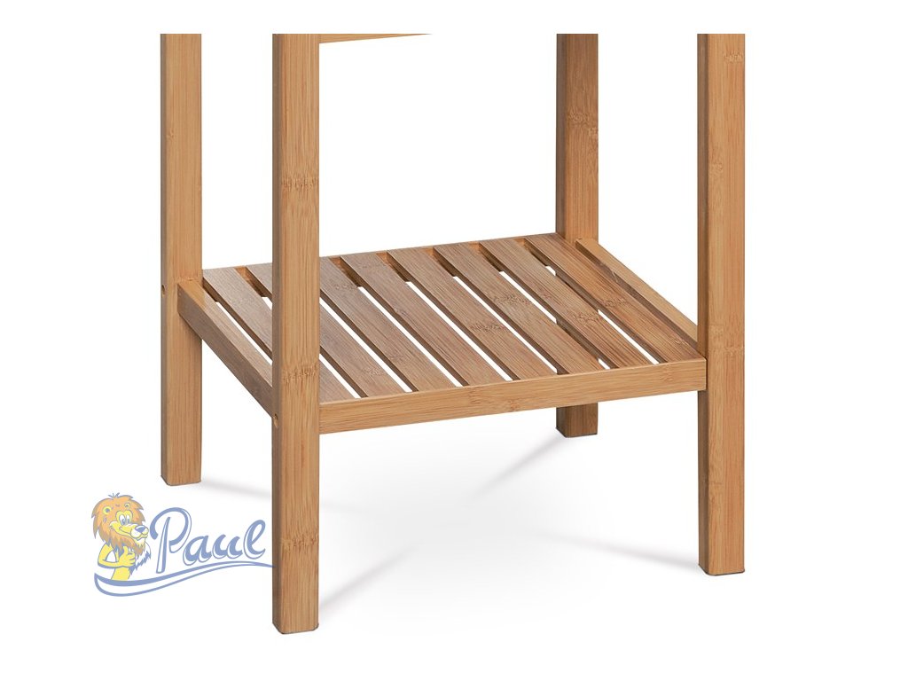 Regál DR-011-5 značky Autronic je vyroben z masivního bambusu v přírodním odstínu, který zajišťuje pevnost a stabilitu celé konstrukce. Tři police s lamelovým provedením poskytují dostatek prostoru pro uložení drobných předmětů s nosností až 9 kg na každé polici. Díky otevřenému designu je regál vzdušný a snadno přístupný ze všech stran, což usnadňuje organizaci a údržbu. Povrch je hladký a příjemný na dotek, materiál se snadno udržuje a je vhodný do různých interiérů, kde oceníte přírodní vzhled a funkčnost. Kompaktní rozměry umožňují umístění i do menších prostor.Doplňkové parametry