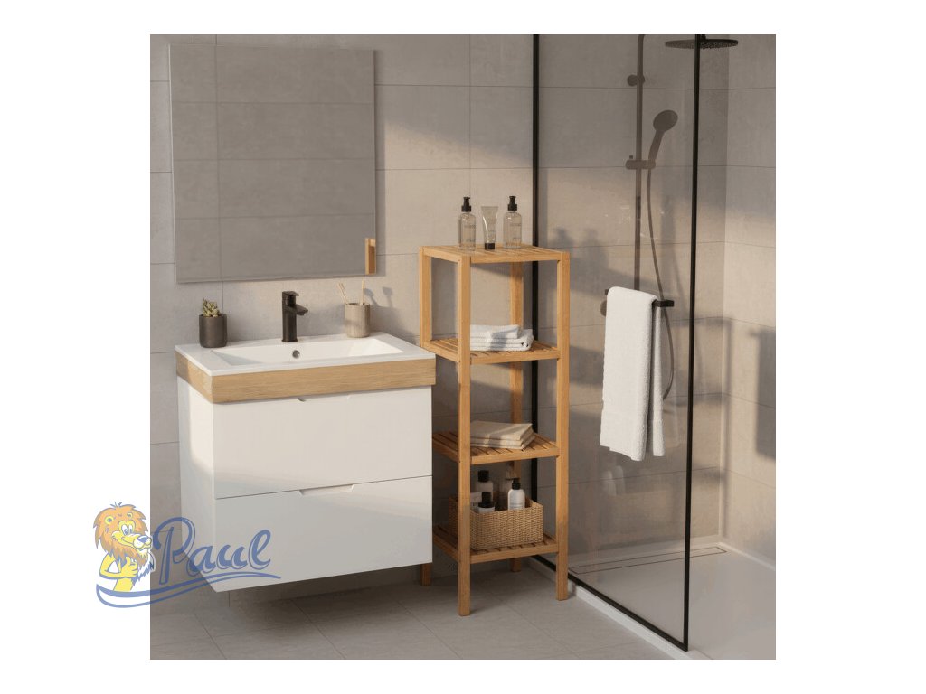 Regál z masivního bambusu nabízí čtyři prostorné police v přírodním odstínu, které jsou ideální pro organizaci a vystavení různých předmětů. Pevný rám a police z bambusového dřeva jsou navrženy pro dlouhou životnost a snadnou údržbu, přičemž přírodní textura materiálu dodává nábytku přirozený vzhled. Otevřená konstrukce umožňuje dobré větrání uložených věcí a zároveň usnadňuje přístup. Nosnost každé police je 12 kg, což zajišťuje stabilitu i při umístění těžších předmětů. Kompaktní rozměry regálu umožňují jeho využití v různých typech interiérů, od koupelen po obývací pokoje.Doplňkové parametry