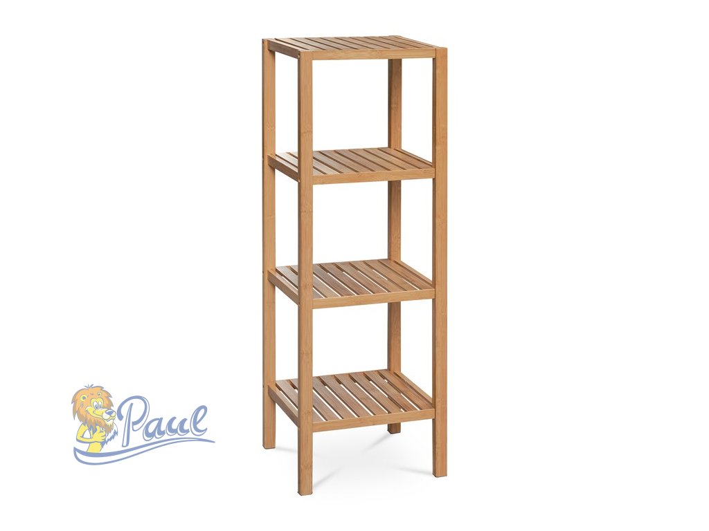 Regál, 4 police, masiv bambus, přírodní odstín, nosnost 12 kg