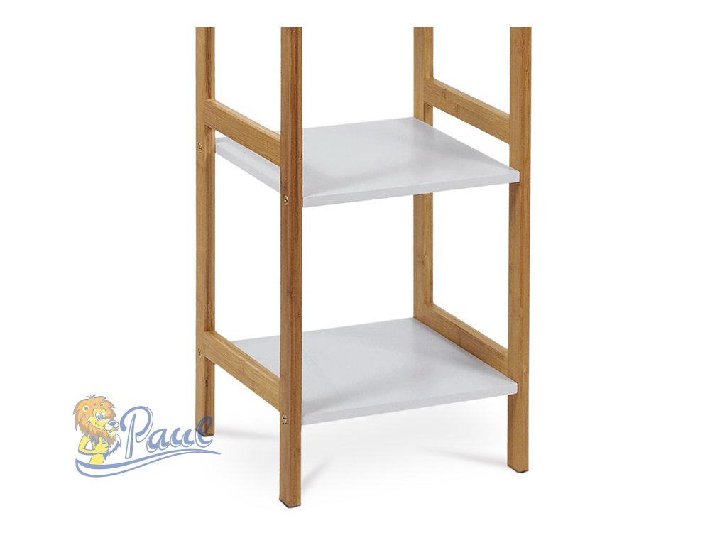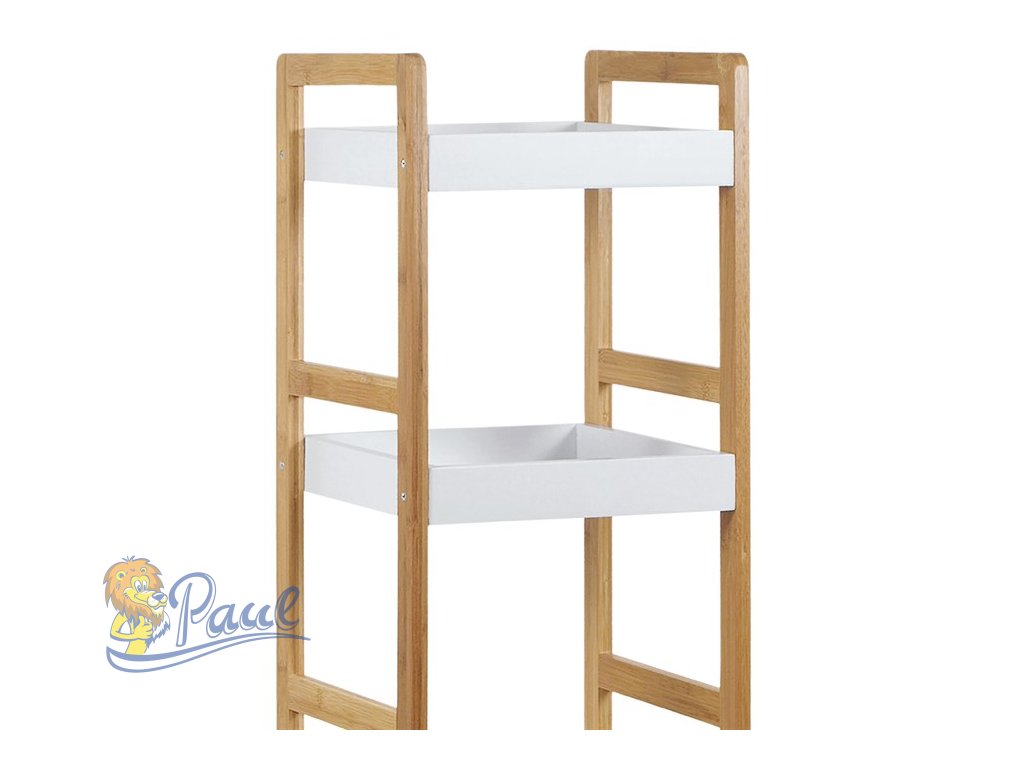 Regál, 5 polic, masiv bambus, přírodní odstín, MDF, bílý matný lak, nosn. 15 kg