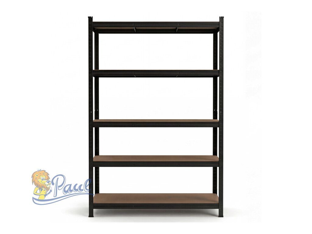 Regál o rozměrech 180 × 120 × 40 cm nabízí pět polic z MDF desek v černém lakovaném ocelovém rámu, který zajišťuje stabilitu a vyšší nosnost. Pevné police poskytují dostatek úložného prostoru pro uspořádání různých předmětů v domácnosti či kanceláři. Kovový rám je opatřen práškovým lakem, který chrání proti poškození a usnadňuje údržbu. Díky jednoduchému a funkčnímu designu se regál hodí do různých interiérů a umožňuje efektivní využití prostoru. Nosnost jednotlivých polic umožňuje uložení těžších předmětů bez obav o stabilitu.Doplňkové parametry
