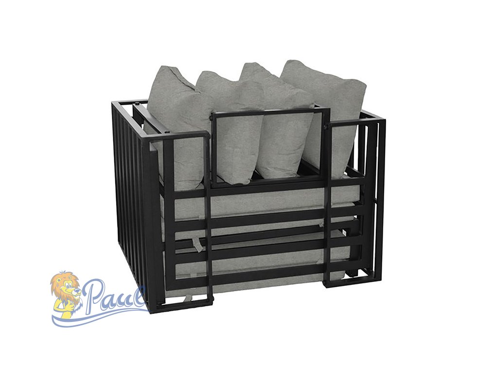 Zahradní set 2+1, stolek 75x30, multifunkční pohovka, kov antracit, světle šedá látka