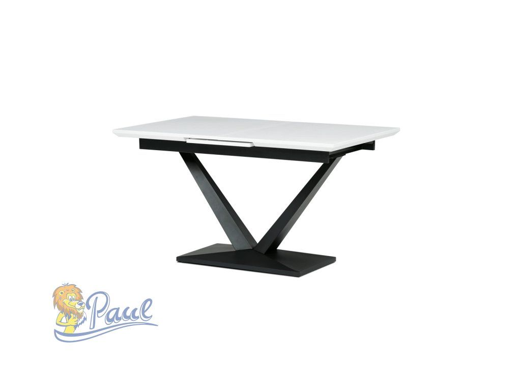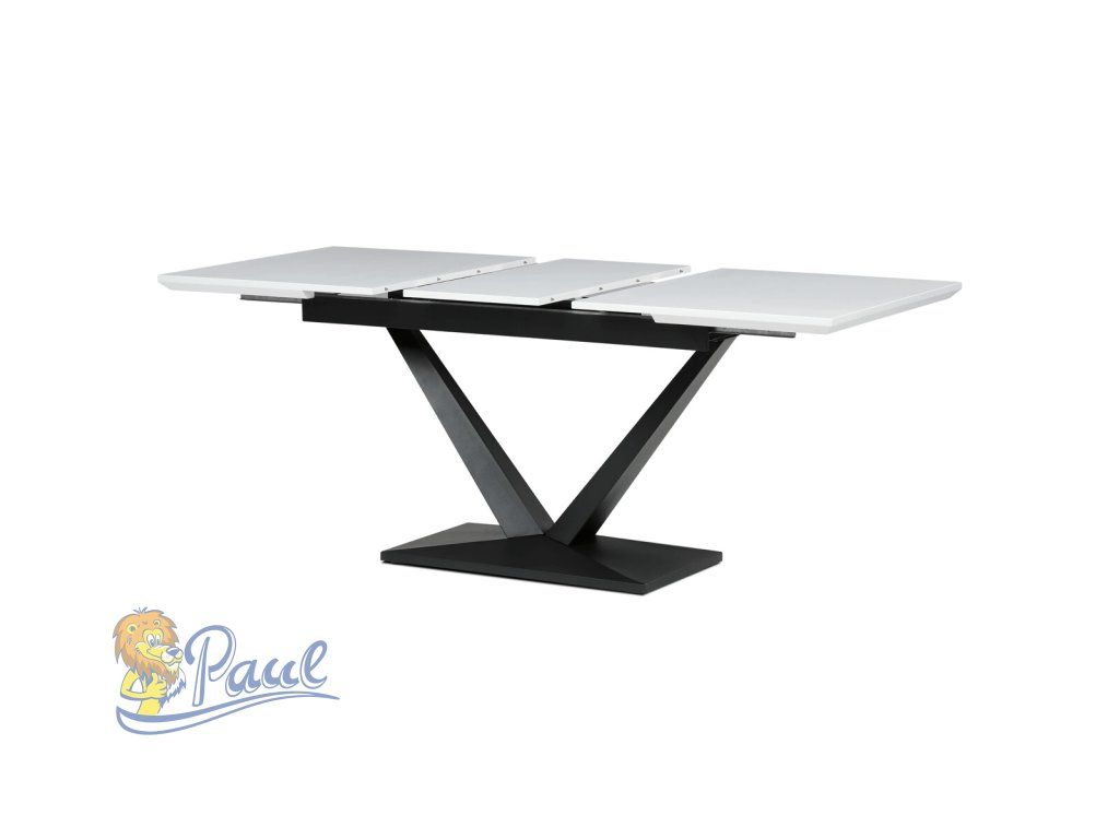 Stůl jídelní, 140+40x85, bílá matná MDF deska, černé kovové nohy.
