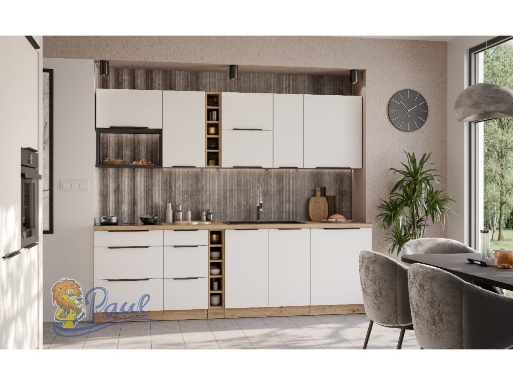 Kuchyňská linka 255 cm Aria 1 - Dub artisan + WH Crystal white AFM