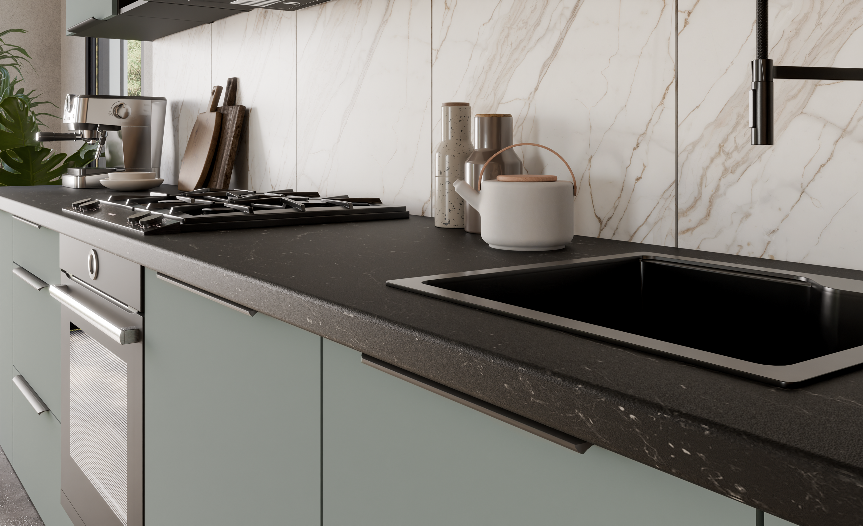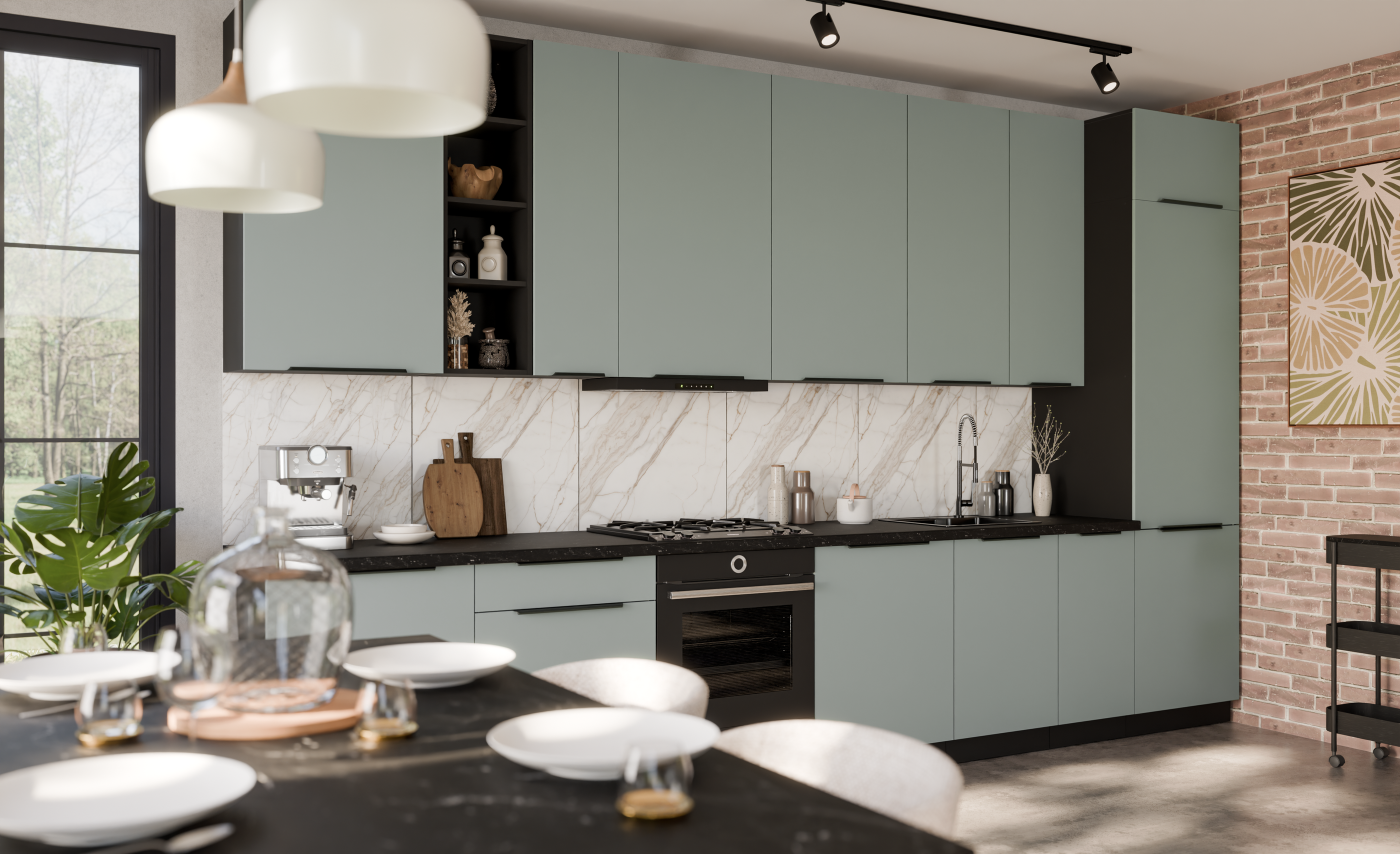 Kuchyňská linka 390 cm Aria 2 - Černá + SA Aquamarine AFM