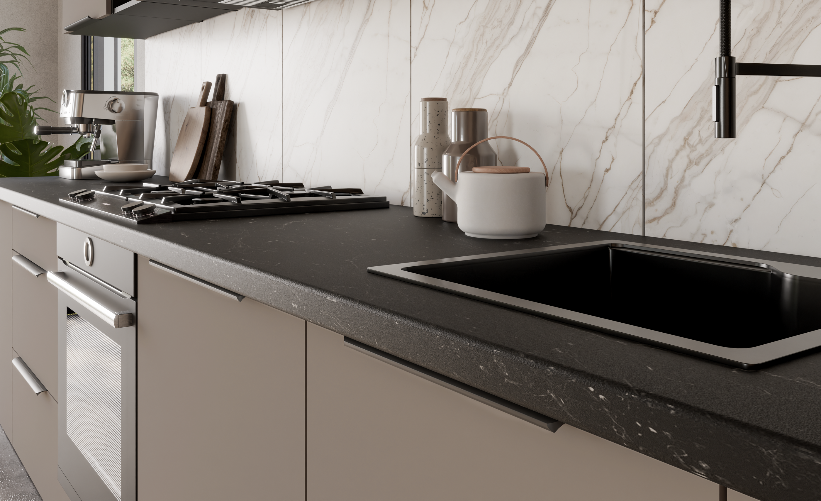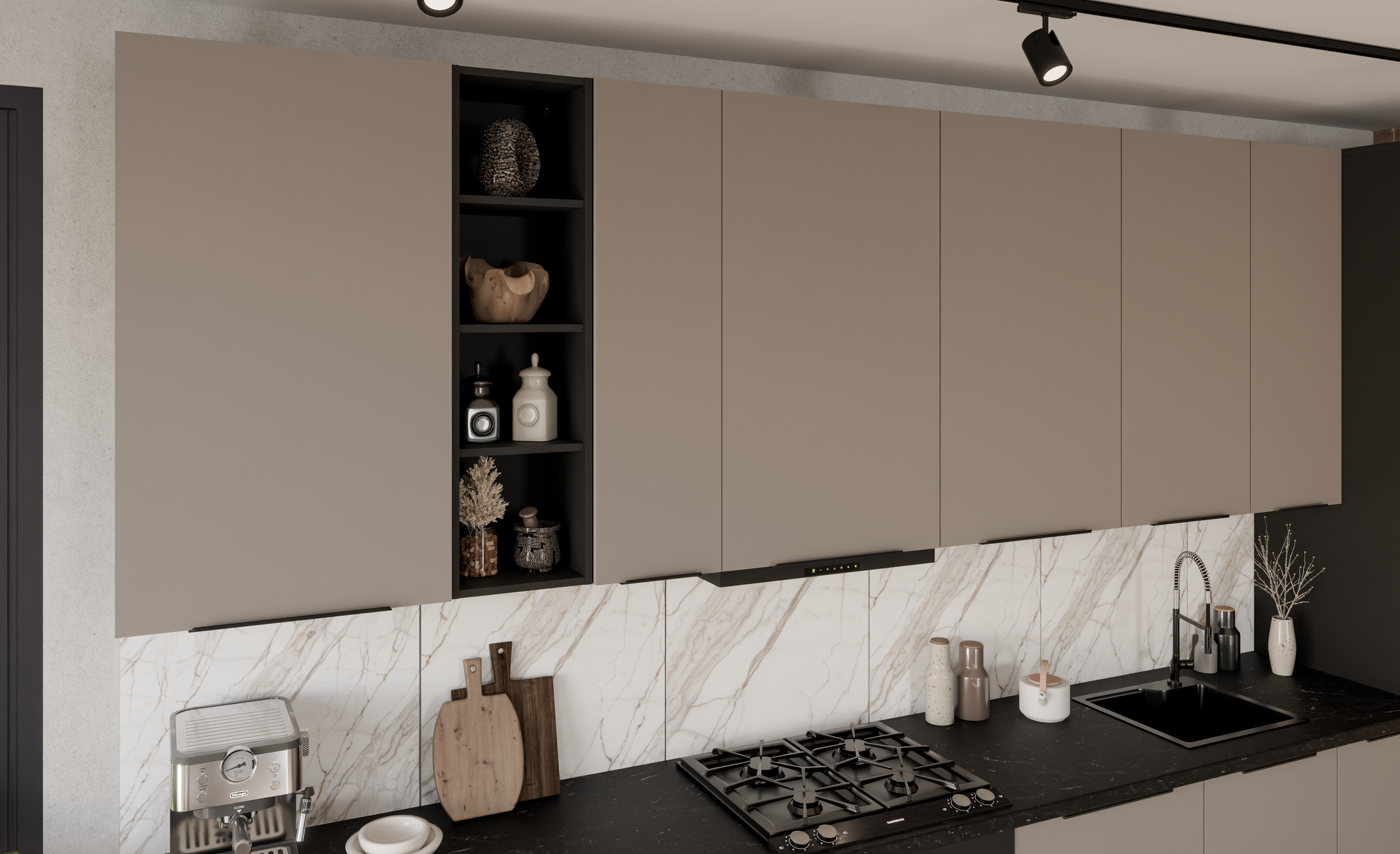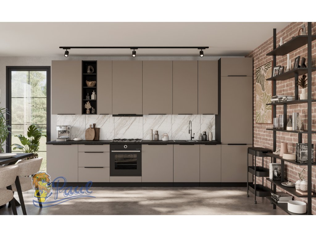Kuchyňská linka 390 cm Aria 2 - Černá + TA Sandgrau AFM