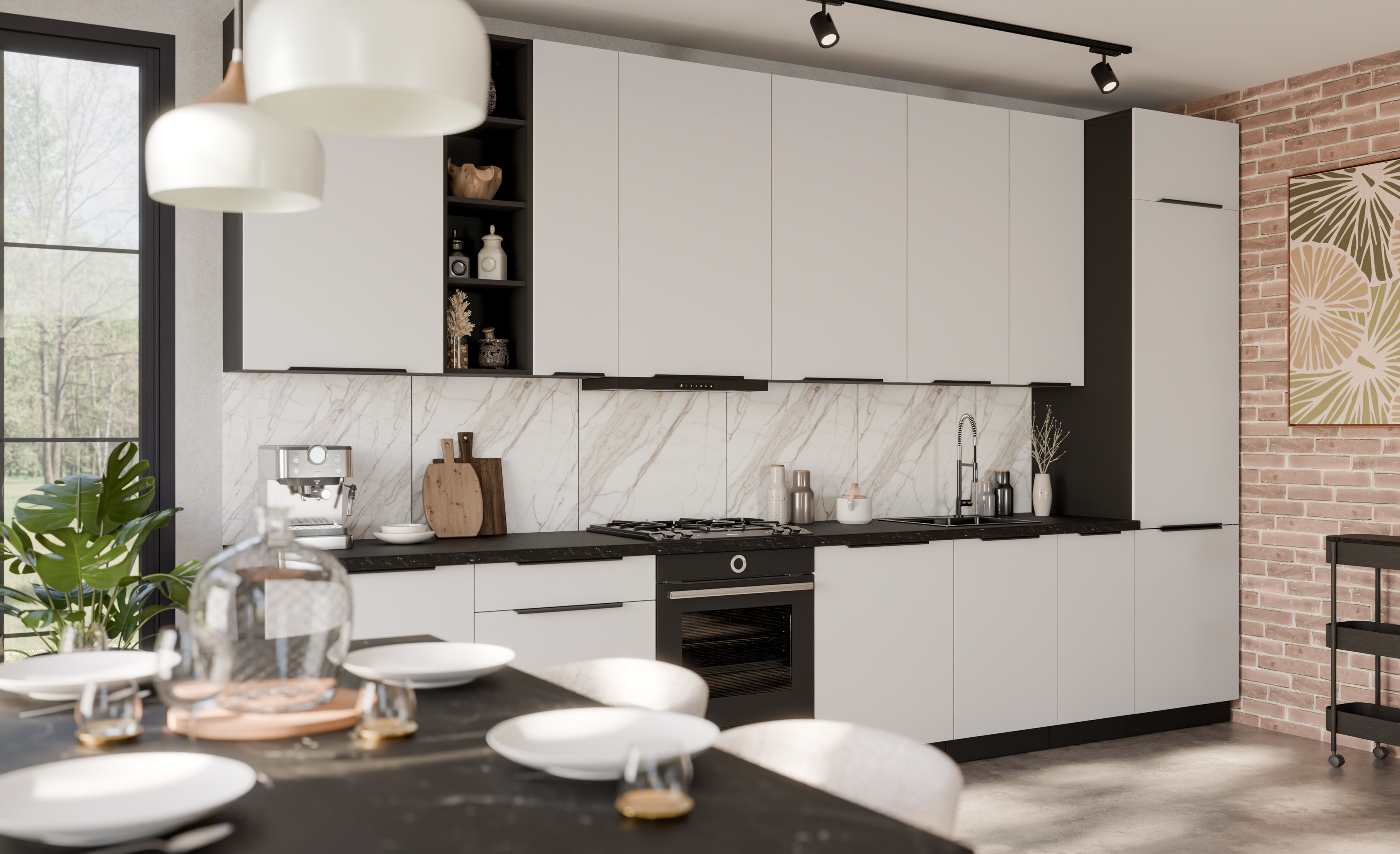 Kuchyňská linka 390 cm Aria 2 - Černá + WH Crystal white AFM
