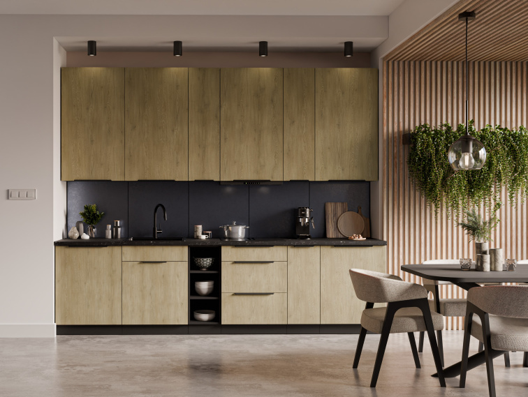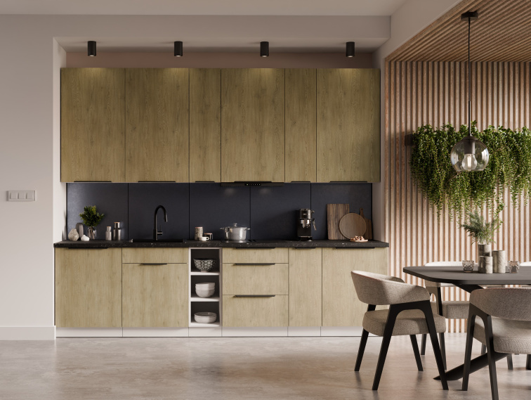 Potřebný rozměr pracovní desky pro tuto kuchyňskou linku je 300 cm.