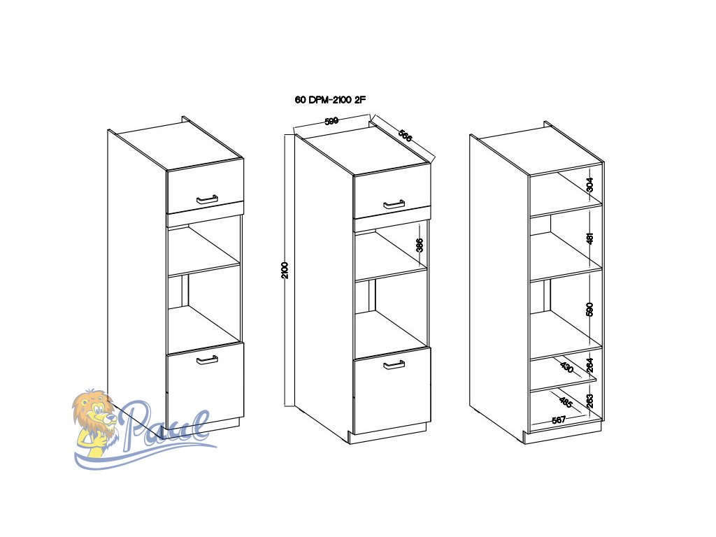 Vysoká skříňka pro vestavnou a mikrovlnou troubu Luna 60 DPM-210 2F
