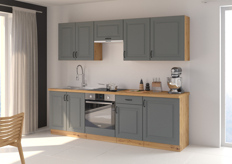 Kuchyňská linka Stilo se vyznačuje moderním a elegantním designem, který se hodí do různých interiérů. Minimalistické linie a kvalitní materiály dodávají kuchyni nadčasový vzhled. Samostatné skříňky lze kombinovat s různými pracovními deskami a dalšími prvky, což umožňuje vytvořit jedinečný a osobitý styl.