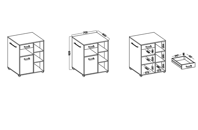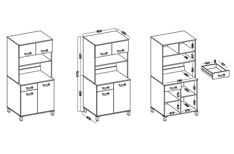 Sestava SoleaSkládá se: Buffet Solea 120, Buffet Solea 80 a Roller Solea 80Barevná kombinace: Dub artisan / Kašmír
