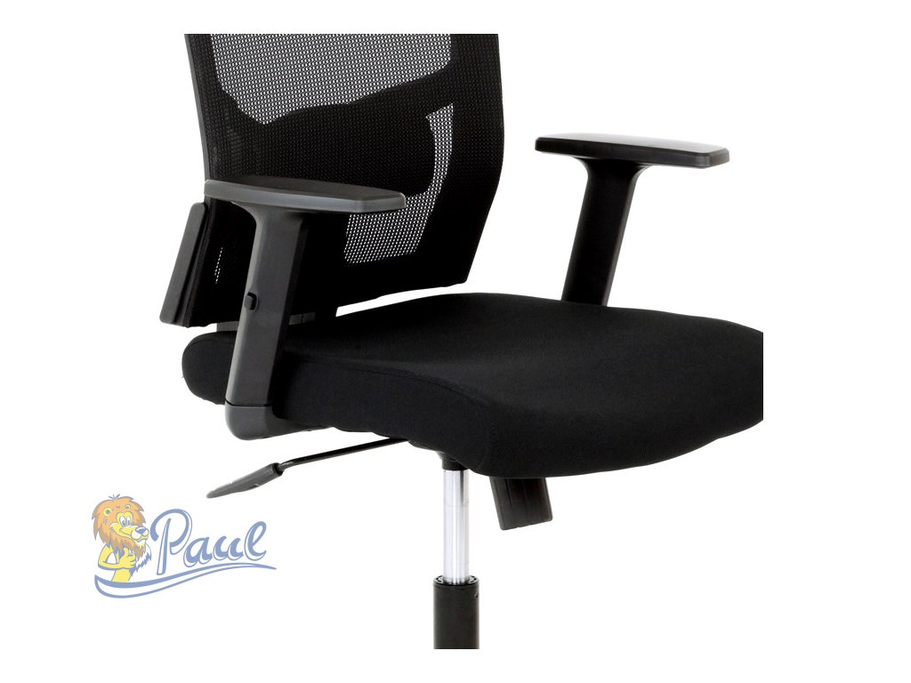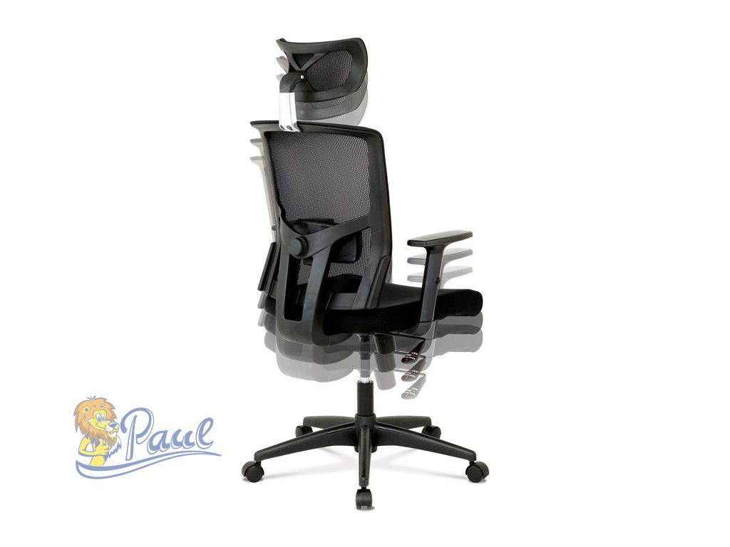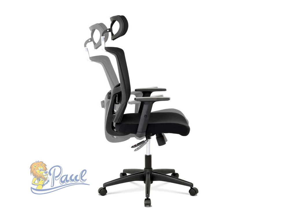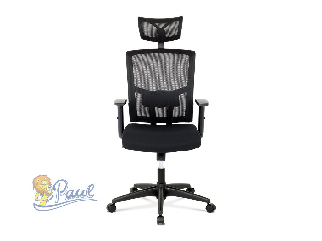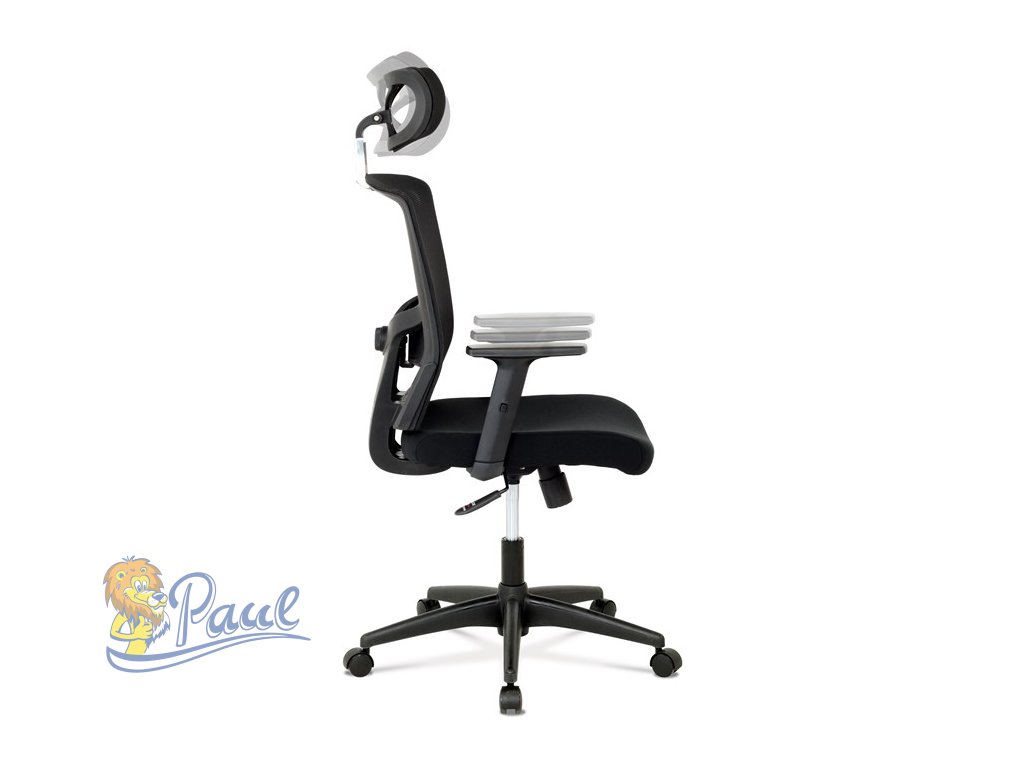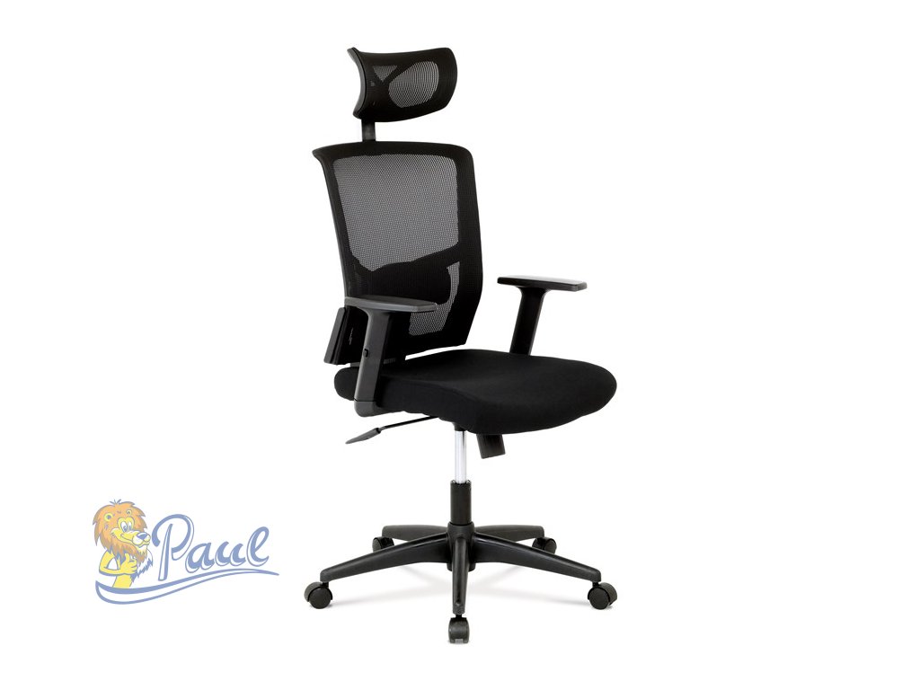 Kancelářská židle s podhlavníkem a potahem z černé látky a prodyšné síťoviny mesh nabízí komfortní sezení s důrazem na ergonomii. Opěradlo je vybaveno nastavitelnou bederní opěrkou, která podporuje správné držení těla, a výškově nastavitelným podhlavníkem pro optimální oporu krční páteře. Sedák je čalouněný kvalitní látkou, která zajišťuje pohodlí i při dlouhodobém používání. Houpací mechanismus umožňuje plynulé naklápění s možností aretace v základní poloze, zatímco 1D jednosměrně nastavitelné područky přispívají k individuálnímu přizpůsobení. Plastový kříž s pěti kolečky poskytuje stabilitu a snadnou mobilitu. Židle je výškově nastavitelná a vhodná pro běžné kancelářské použití.Doplňkové parametry