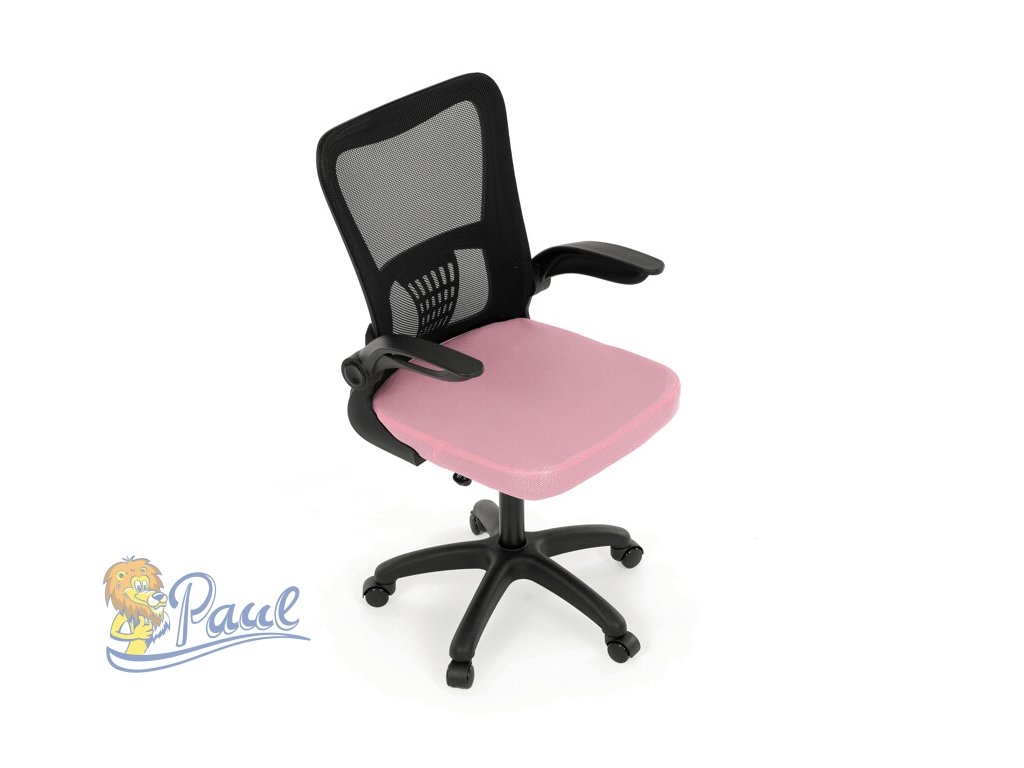 Kancelářská židle s označením KA-K2006 PINK kombinuje moderní design s funkčností vhodnou pro každodenní práci. Opěrák je vyroben z černé prodyšné síťoviny, která zajišťuje optimální cirkulaci vzduchu a podporuje pohodlí při delším sezení. Sedák je čalouněný růžovou látkou s dostatečnou výplní pro komfortní posed. Odklápěcí plastové područky umožňují snadné přizpůsobení pracovnímu prostoru a zvyšují flexibilitu používání. Houpací mechanismus s možností nastavení výšky sedáku přispívá k ergonomii a individuálnímu nastavení. Plastový kříž zajišťuje stabilitu a kolečka jsou určena pro tvrdé povrchy, což umožňuje snadný pohyb bez poškození podlahy. Židle je vhodná pro uživatele hledající kombinaci praktičnosti a svěžího barevného akcentu.Doplňkové parametry