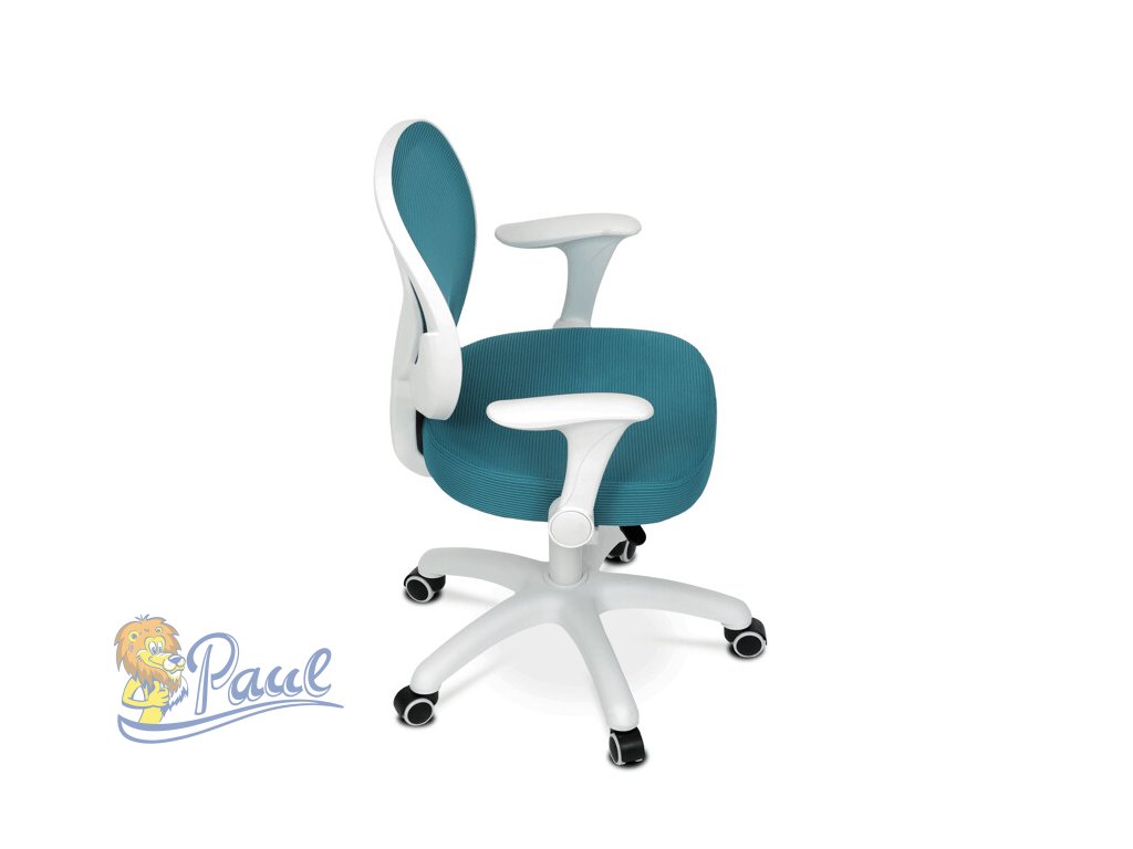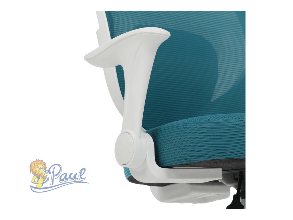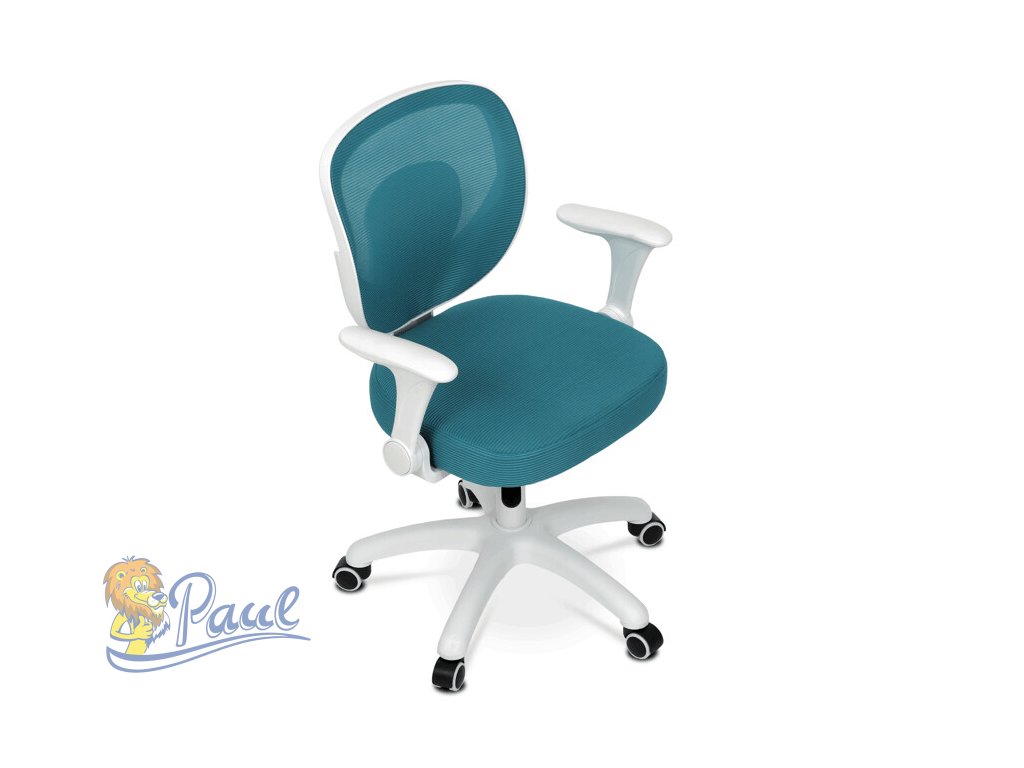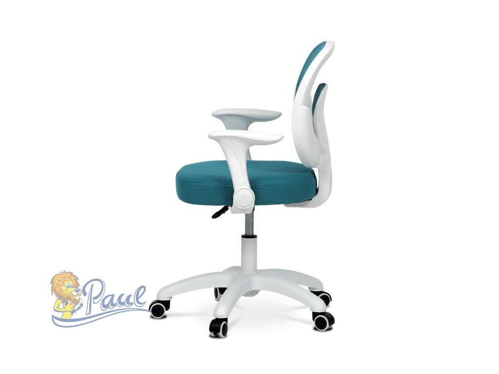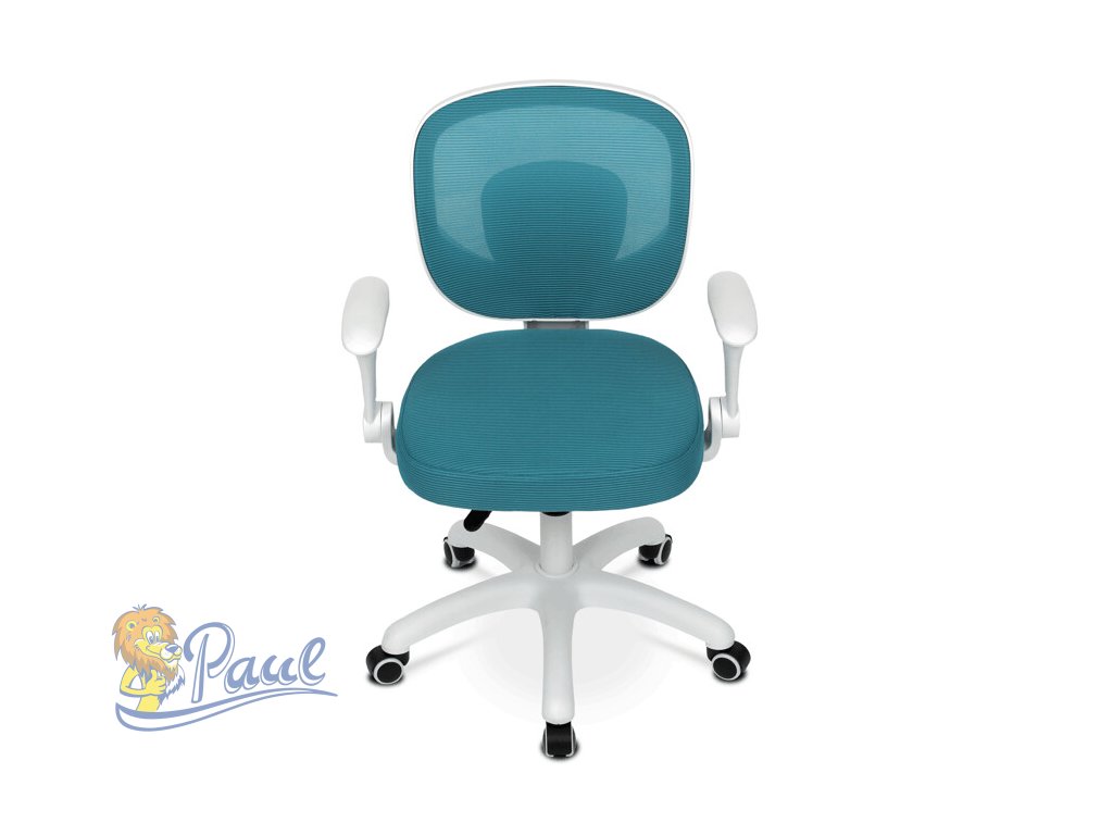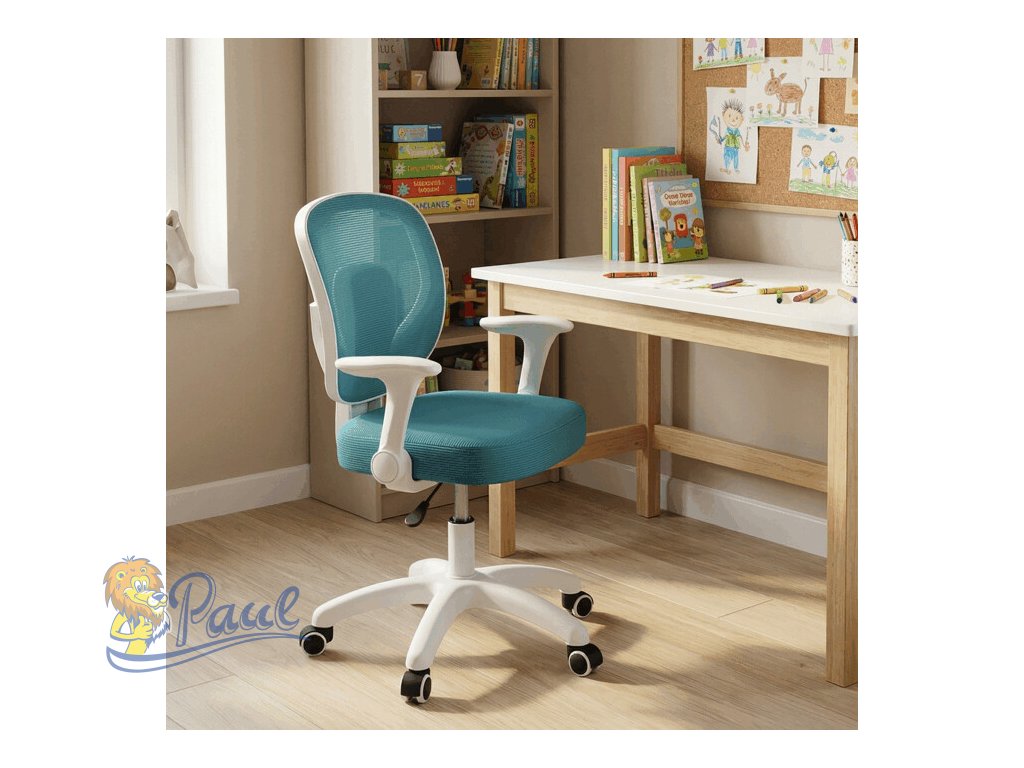 Dětská židle s modrým síťovinovým potahem nabízí prodyšné a pohodlné sezení vhodné pro mladší uživatele. Opěradlo i sedák jsou potažené jemnou síťovinou, která podporuje cirkulaci vzduchu a přispívá k příjemnému pocitu během delšího sezení. Odklápěcí područky z bílého plastu umožňují snadné přizpůsobení prostoru a lepší manipulaci s židlí. Výškově nastavitelný mechanismus umožňuje snadné přizpůsobení výšky sedáku podle potřeby dítěte. Stabilní plastový kříž je vybaven kolečky určenými pro tvrdé podlahy, což zajišťuje hladký pohyb a ochranu povrchu podlahy.Doplňkové parametry