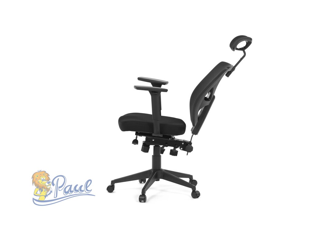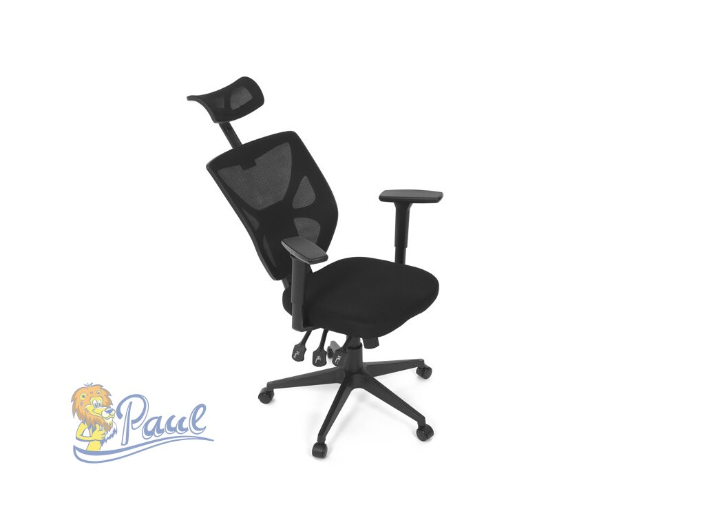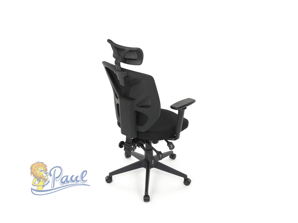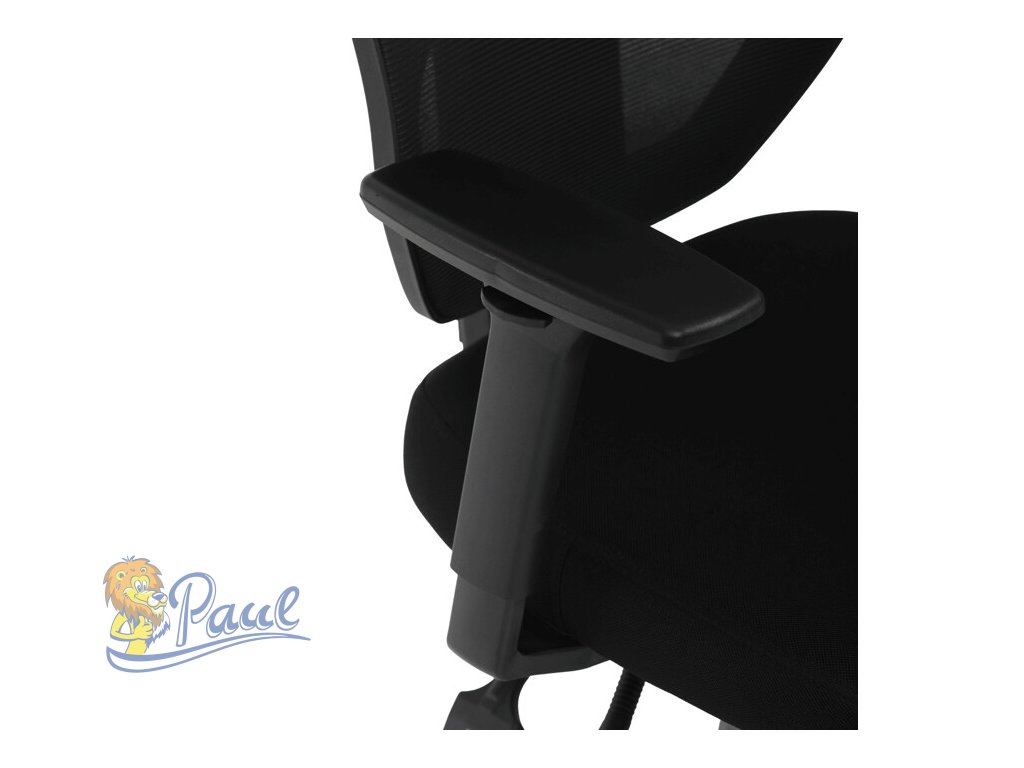 Kancelářská židle s černým prodyšným opěrákem a látkovým měkčeným sedákem nabízí vysoký komfort. Díky ergonomicky tvarovanému opěradlu a integrované opěrce hlavy, podporuje správné držení krční páteře. Sedák je vybaven posuvnou a balanční funkcí pro individuální nastavení hloubky a sklonu sezení, což zvyšuje pohodlí při dlouhodobé práci. Asynchronní mechanismus umožňuje plynulé naklápění opěradla s možností aretace v několika polohách, čímž přispívá k ergonomii a podpoře správného držení těla. 3D područky lze nastavit ve třech směrech – výškově, do stran i dopředu – pro maximální přizpůsobení uživateli. Plastový kříž zajišťuje stabilitu a lehkost celé židle, která je vhodná pro kancelářské prostředí i domácí pracovny.Doplňkové parametry