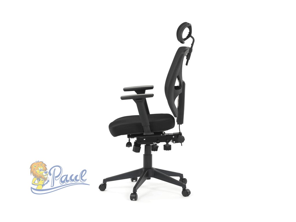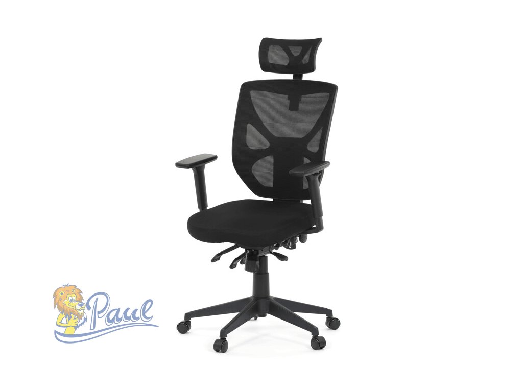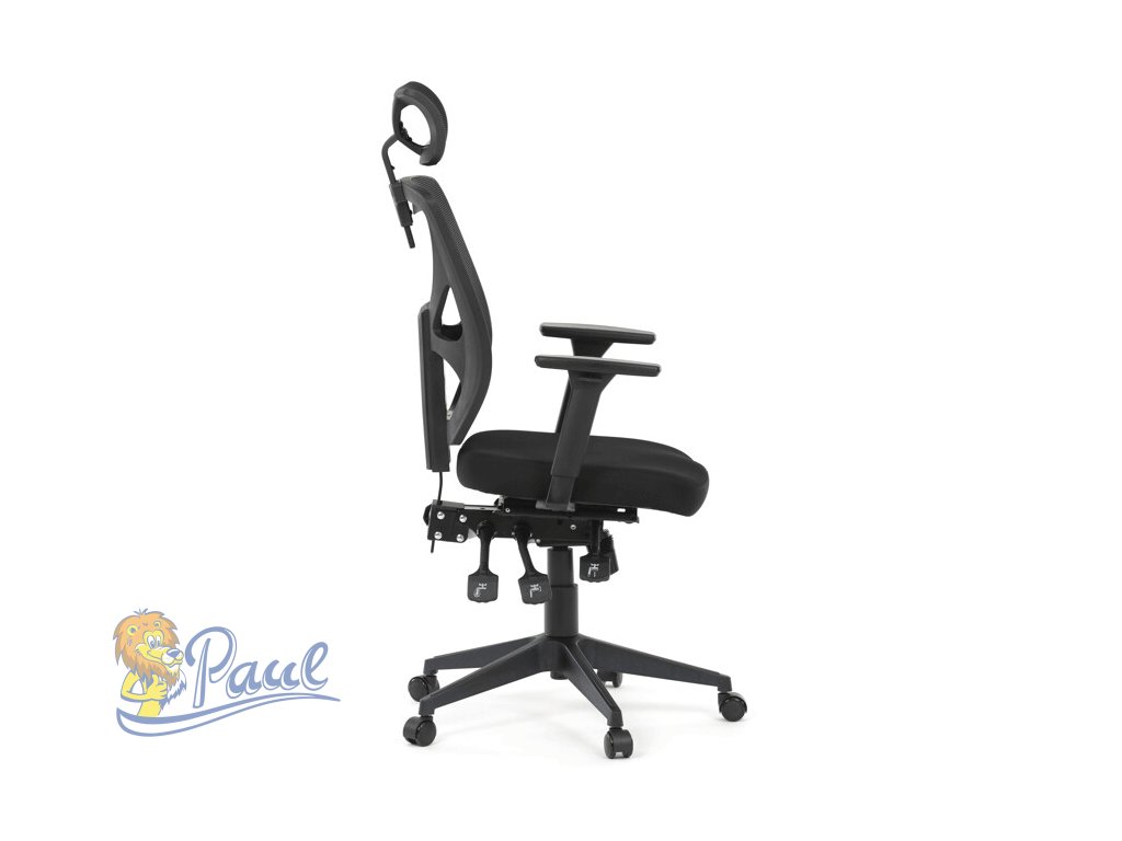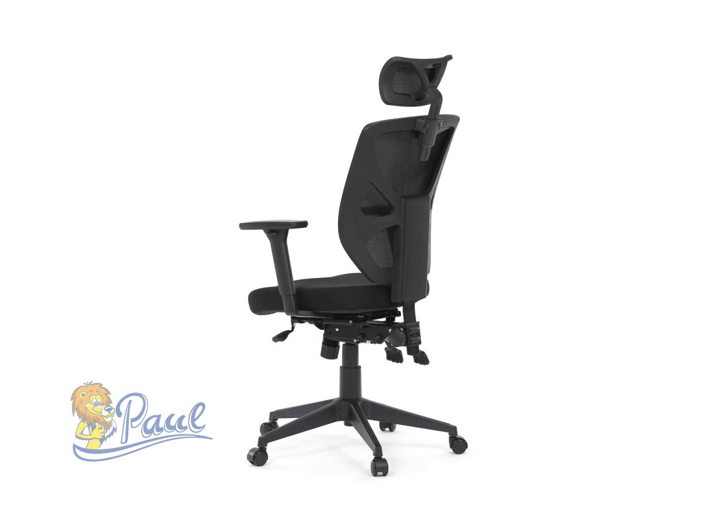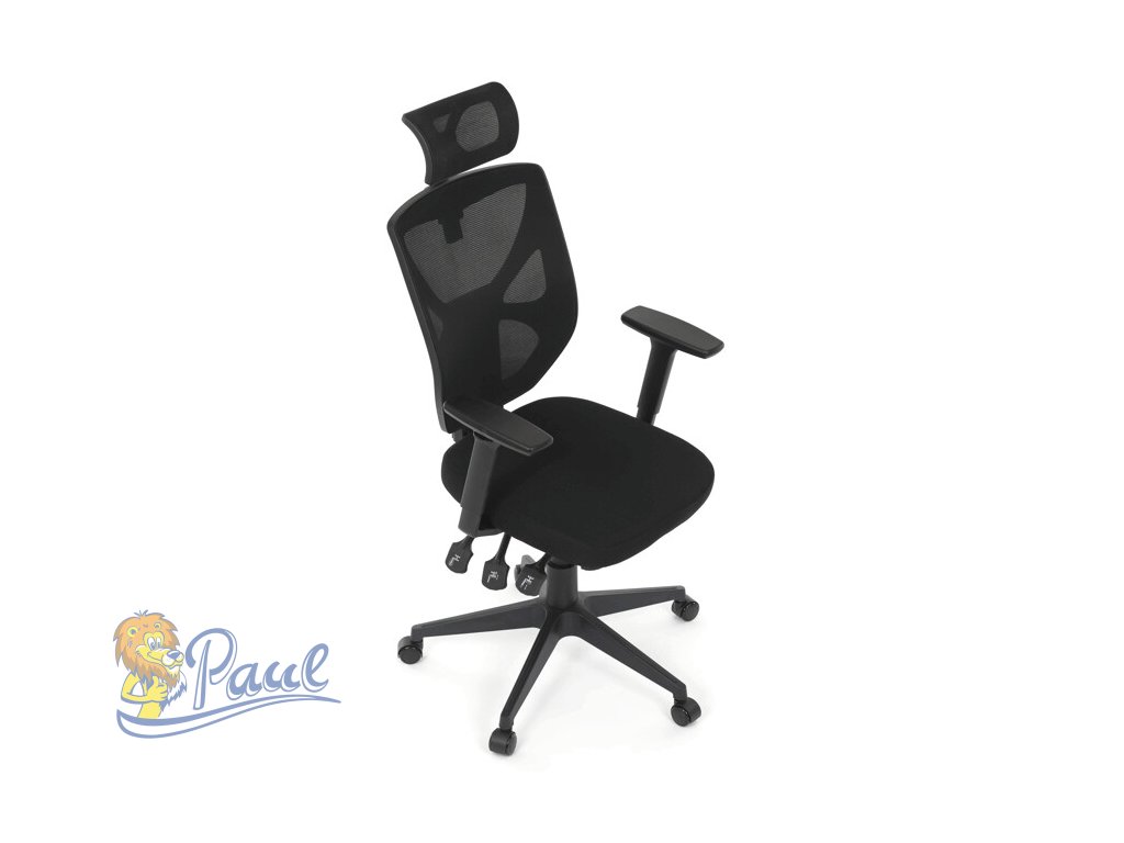 Kancelářská židle s černým prodyšným opěrákem a látkovým měkčeným sedákem nabízí vysoký komfort. Díky ergonomicky tvarovanému opěradlu a integrované opěrce hlavy, podporuje správné držení krční páteře. Sedák je vybaven posuvnou a balanční funkcí pro individuální nastavení hloubky a sklonu sezení, což zvyšuje pohodlí při dlouhodobé práci. Asynchronní mechanismus umožňuje plynulé naklápění opěradla s možností aretace v několika polohách, čímž přispívá k ergonomii a podpoře správného držení těla. 3D područky lze nastavit ve třech směrech – výškově, do stran i dopředu – pro maximální přizpůsobení uživateli. Plastový kříž zajišťuje stabilitu a lehkost celé židle, která je vhodná pro kancelářské prostředí i domácí pracovny.Doplňkové parametry