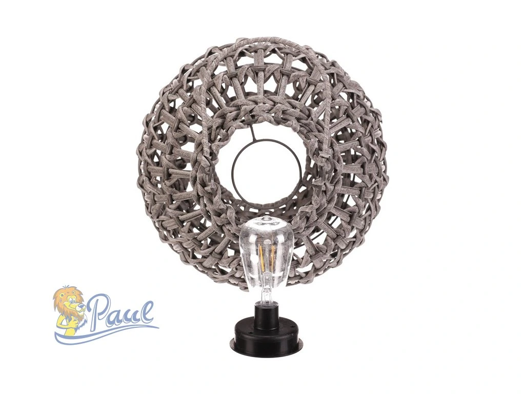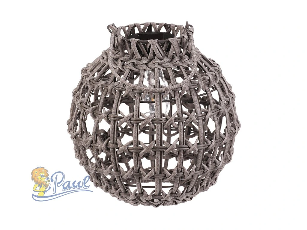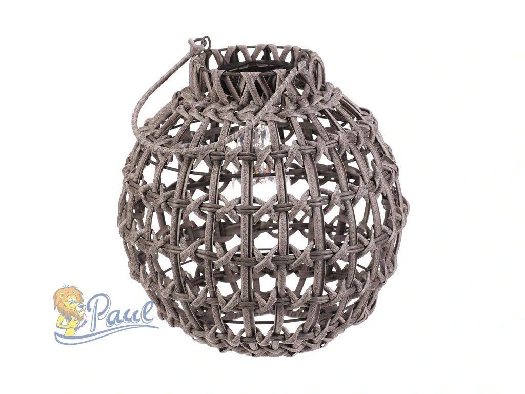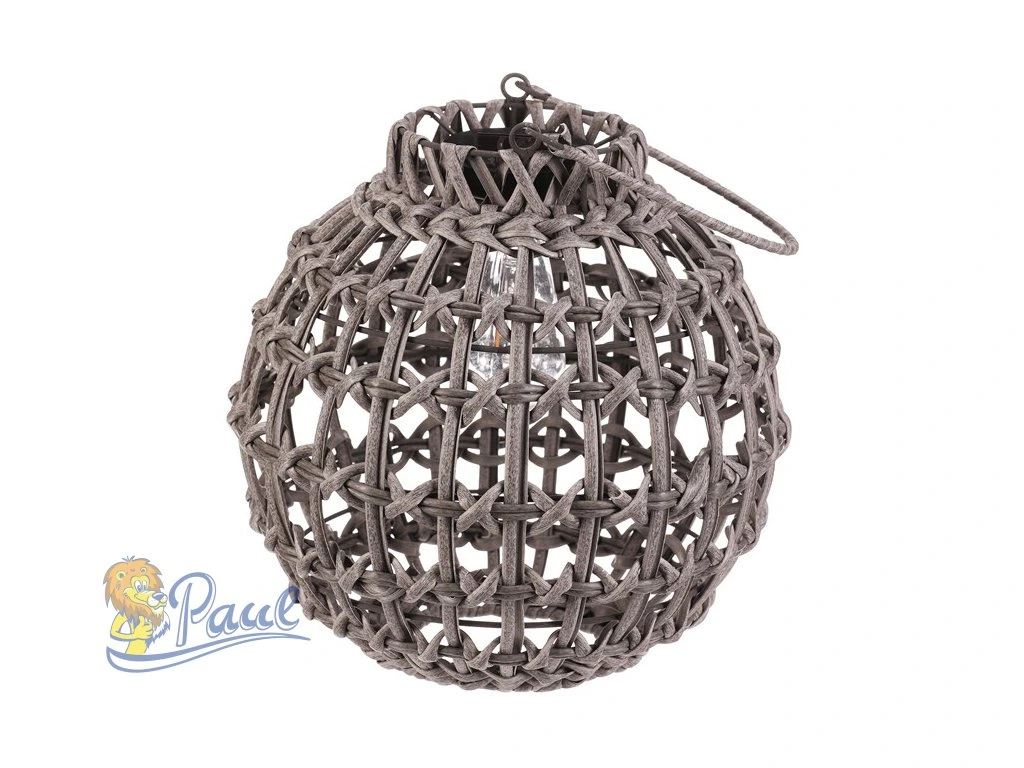 Lucerna - umělý ratan, kulatá, LED osvětl., vel. M, šedá