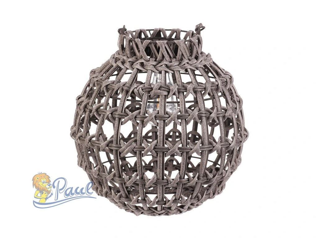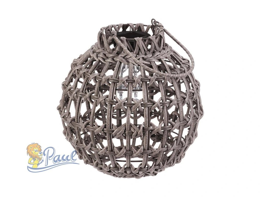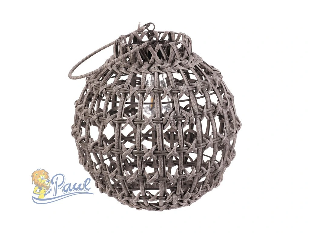 Lampión z šedého polyratanu ve tvaru koule nabízí zajímavé prostorové provedení s otevřenou strukturou, která umožňuje efektivní rozptyl LED osvětlení uvnitř. Jeho lehká konstrukce a praktické madlo usnadňují přenášení a zavěšení, což z něj činí vhodný doplněk pro venkovní i vnitřní použití. Povrch polyratanu je odolný vůči povětrnostním vlivům a snadno se udržuje, což zajišťuje dlouhodobou životnost lampiónu. Velikost M je ideální pro vytvoření příjemné atmosféry na terase, balkóně nebo v zahradě. LED osvětlení je napájeno 1 x AA dobíjecí baterií a zároveň solárním panelem umístěným na horní hraně.Doplňkové parametry
