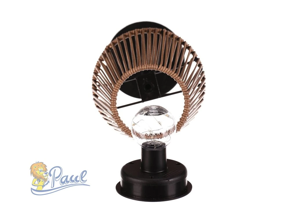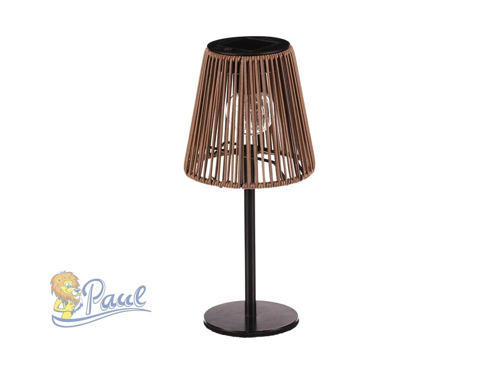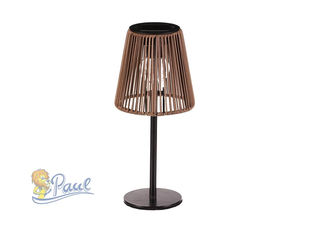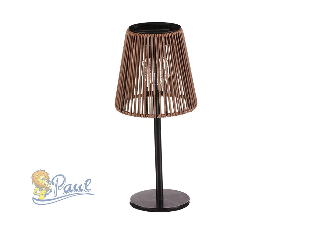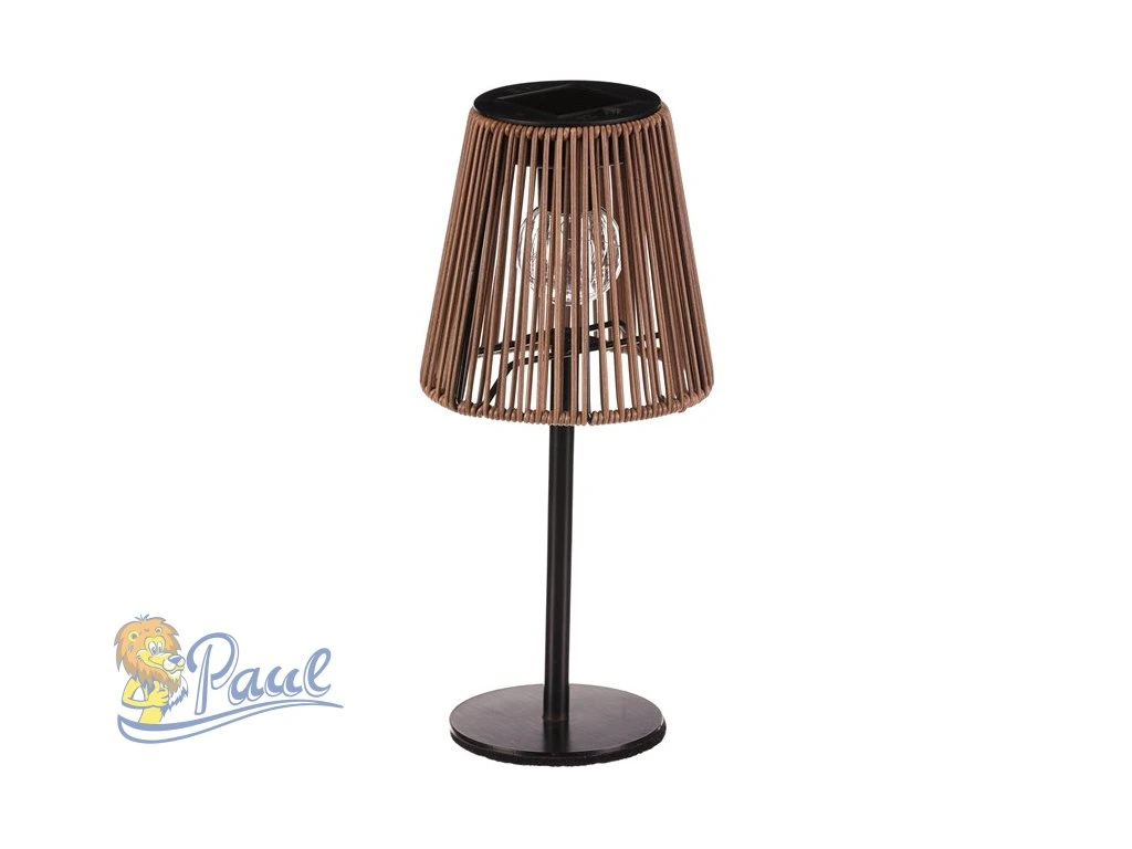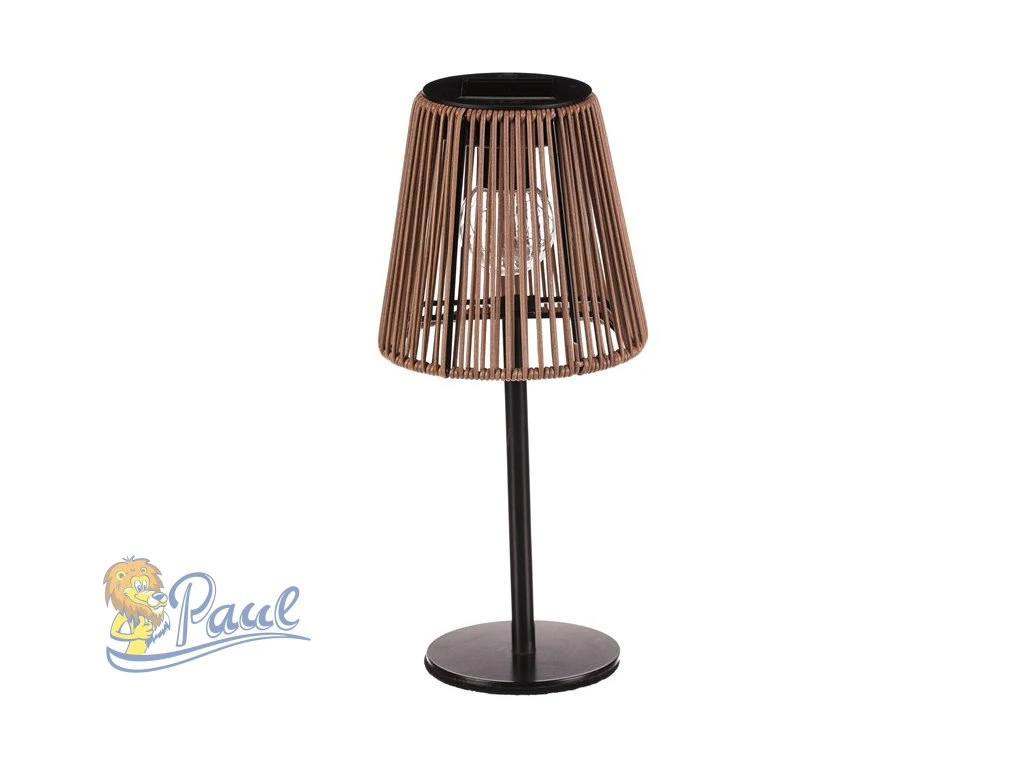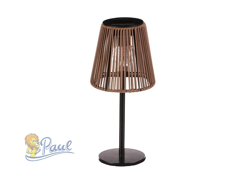 Solární lampión v hnědém provedení kombinuje pevnou kovovou základnu s elegantním stínidlem z polyratanu, které vytváří příjemný světelný efekt. LED osvětlení je napájeno solární energií, což umožňuje bezdrátový provoz a snadnou instalaci bez potřeby elektrické zásuvky. Design lampy ve tvaru klasického stolního svítidla přináší do interiéru i exteriéru dekorativní a funkční prvek. Polyratanové provedení stínidla dodává výrobku přírodní vzhled a zároveň je odolné vůči povětrnostním vlivům. Výška lampy a stabilní kovová základna zajišťují bezpečné postavení na různých površích. LED osvětlení je napájeno 1 x AA dobíjecí baterií a zároveň solárním panelem umístěným na horní hraně.Doplňkové parametry