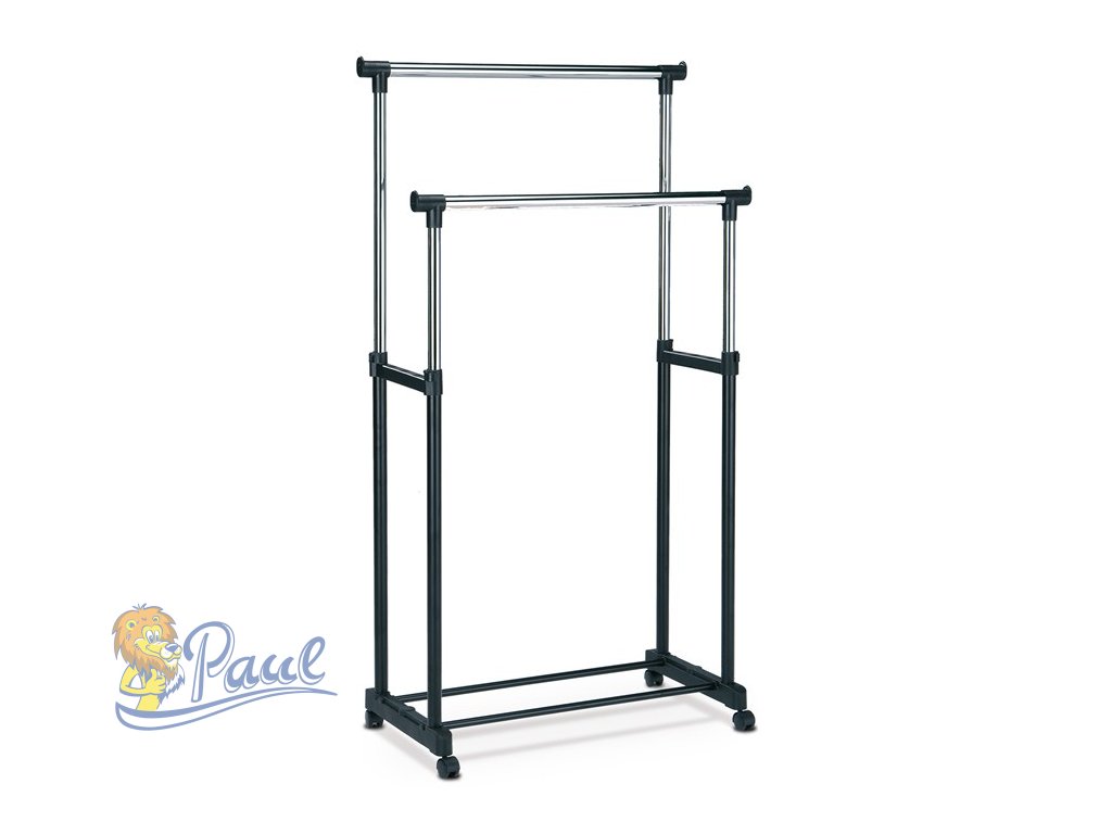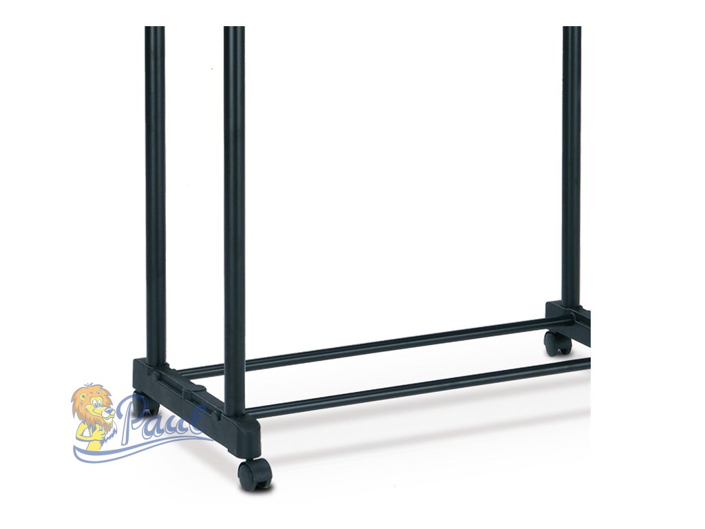 Dvojramenný stojan na šaty v černém provedení kombinuje pevný kovový rám s plastovými prvky pro stabilitu a snadnou manipulaci. Výškově nastavitelná horní tyč umožňuje přizpůsobení podle potřeby, což zajišťuje optimální využití prostoru a pohodlné zavěšení oděvů různých délek. Spodní odkladač nabízí praktické místo pro uložení bot nebo dalších doplňků. Stojan je vybaven kolečky, která usnadňují přesun v interiéru bez poškození podlahy. Kompaktní design a kvalitní materiály zaručují dlouhodobé užívání v domácnostech i komerčních prostorách.Doplňkové parametry