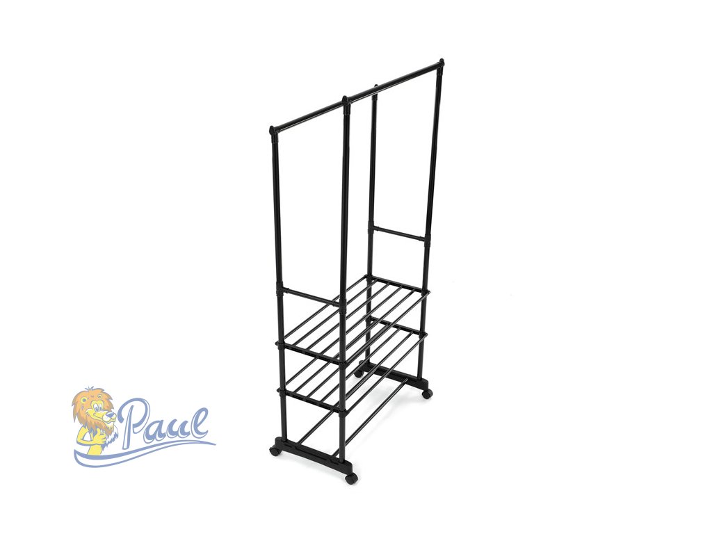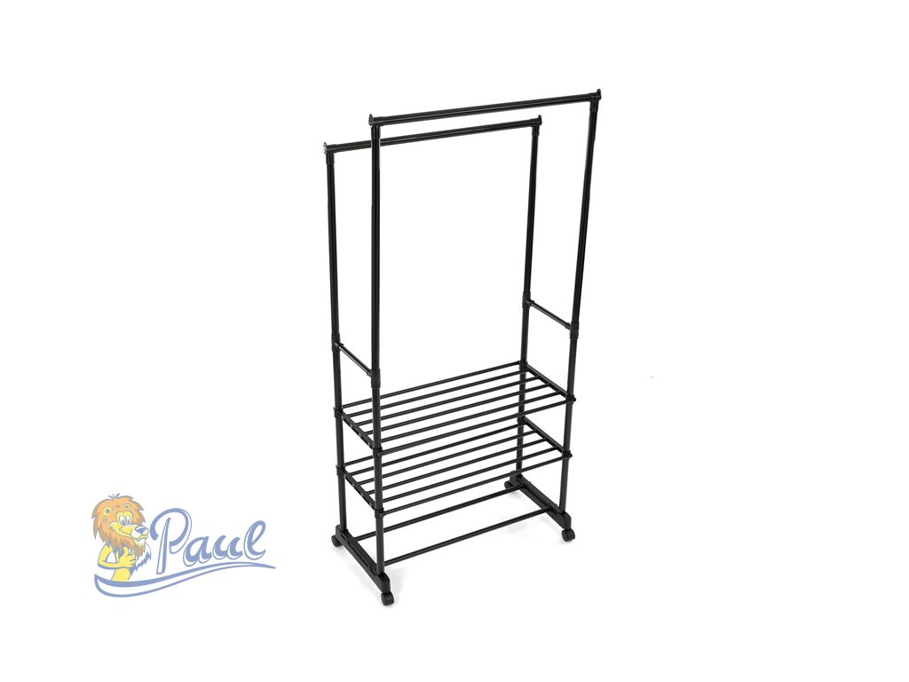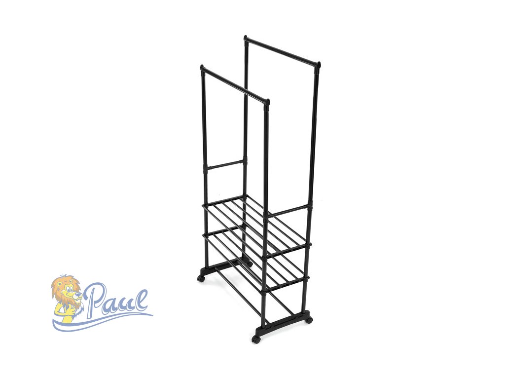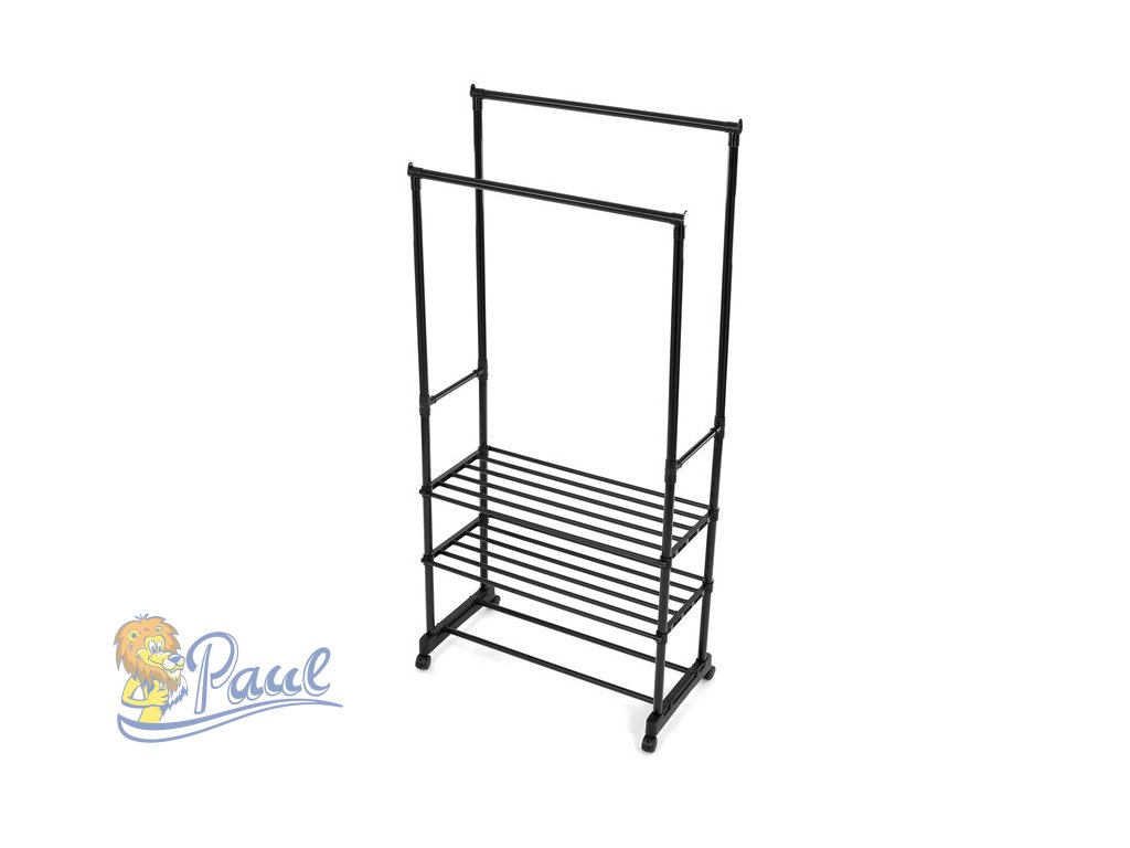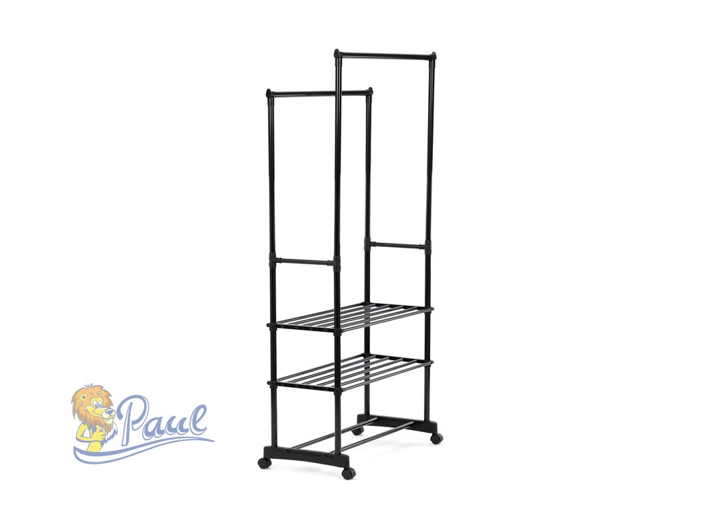 Prostorný stojan na šaty značky Autronic je ideálním pomocníkem pro organizaci vašeho oblečení. Robustní černá kovová konstrukce poskytuje stabilitu a moderní vzhled, zatímco dvě tyče na zavěšení nabízejí dostatek prostoru pro oděvy. Tři spodní police jsou perfektní pro uložení bot, krabic nebo doplňků. Stojan je vybaven kolečky pro snadnou manipulaci a flexibilitu při umístění. Praktický a stylový design z něj činí skvělý doplněk do šatny, ložnice nebo předsíně. Perfektní volba pro přehlednou a funkční organizaci.Doplňkové parametry