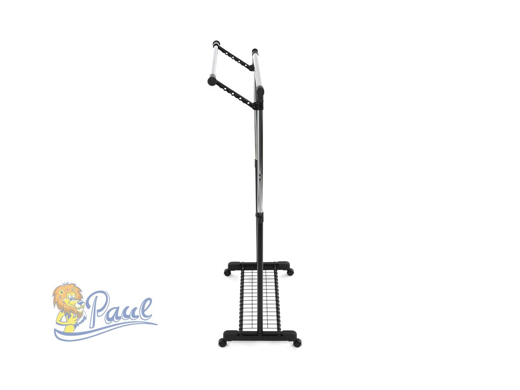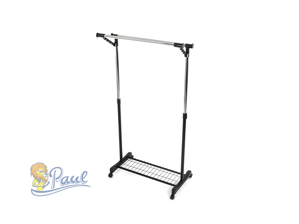 Mobilní stojan na šaty značky Autronic je praktickým řešením pro uložení oblečení v ložnici, šatně nebo předsíni. Černá kovová konstrukce doplněná chromovými detaily zajišťuje moderní vzhled a vysokou stabilitu. Díky nastavitelné výšce se snadno přizpůsobí vašim potřebám. Dolní mřížkovaná police poskytuje další úložný prostor, například na boty či tašky. Stojan je vybaven kolečky, což umožňuje snadnou manipulaci. Je ideálním doplňkem pro ty, kteří hledají flexibilitu a funkčnost spojenou s elegantním designem.Doplňkové parametry
