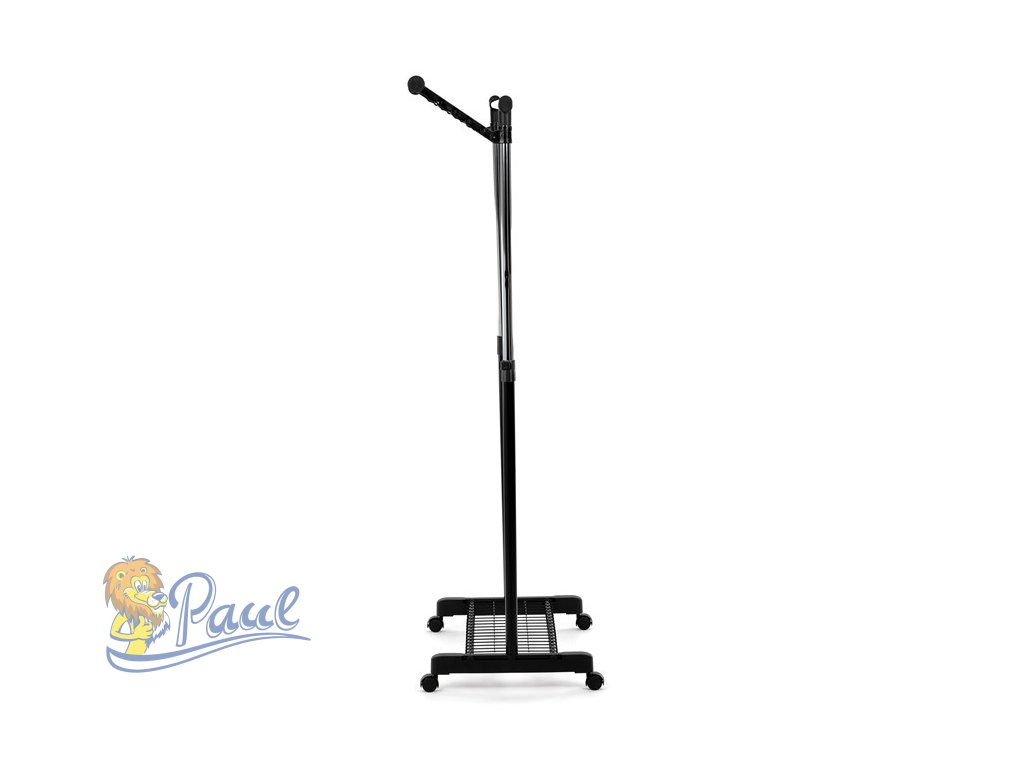 Stojan na šaty s výklopným ramenem, černá barva, kov / plast, chrom