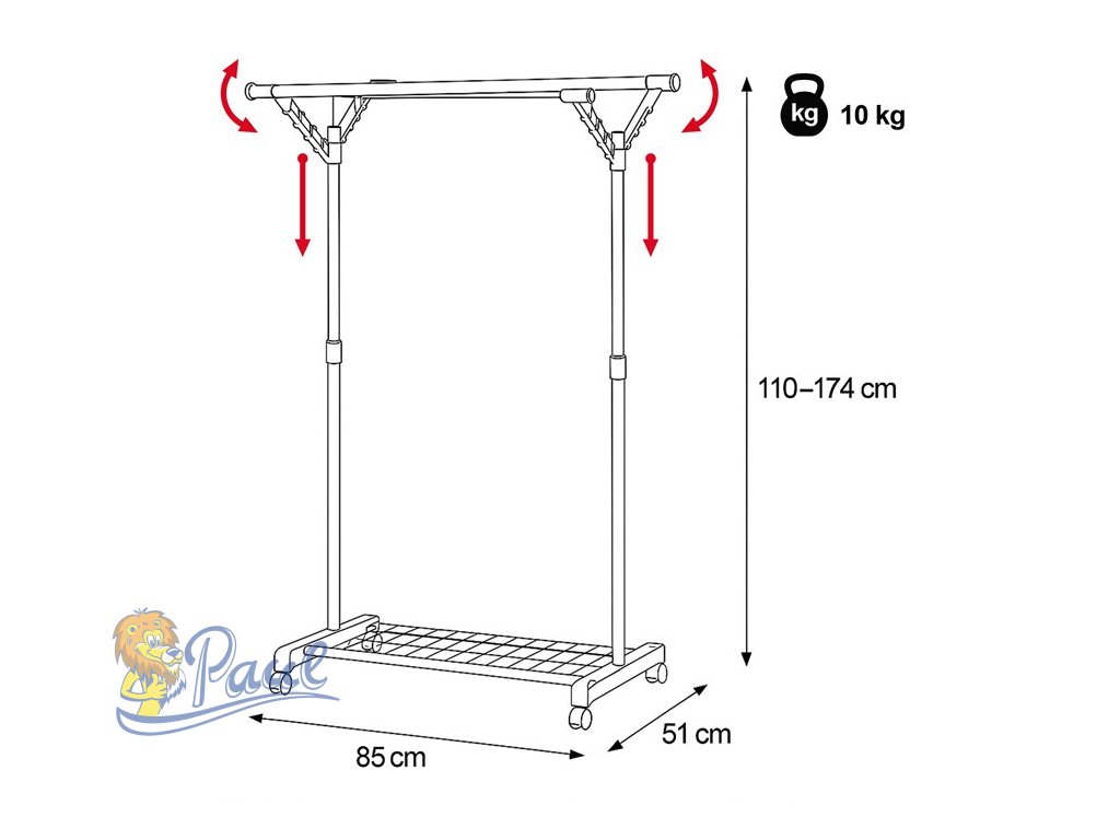 Praktický stojan na šaty značky Autronic přináší funkčnost i moderní design. Černá kovová konstrukce s chromovými prvky nabízí vysokou stabilitu a nastavitelnost, což umožňuje přizpůsobit výšku dle potřeby. Dvojitá tyč poskytuje dostatek prostoru pro zavěšení oblečení, zatímco kolečka zajišťují snadnou manipulaci. Robustní konstrukce zvládne i vyšší zatížení, takže je ideální do ložnic, šaten nebo předsíní. Díky čistému a jednoduchému vzhledu se tento stojan snadno začlení do jakéhokoliv interiéru a usnadní organizaci vašeho prostoru.Doplňkové parametry