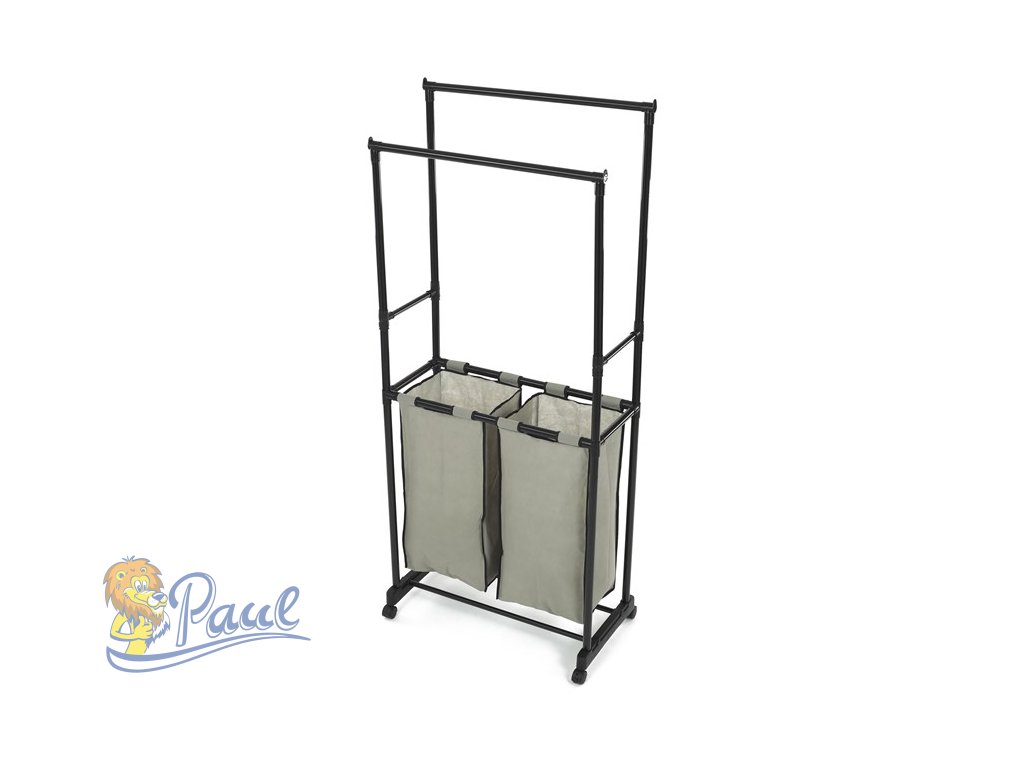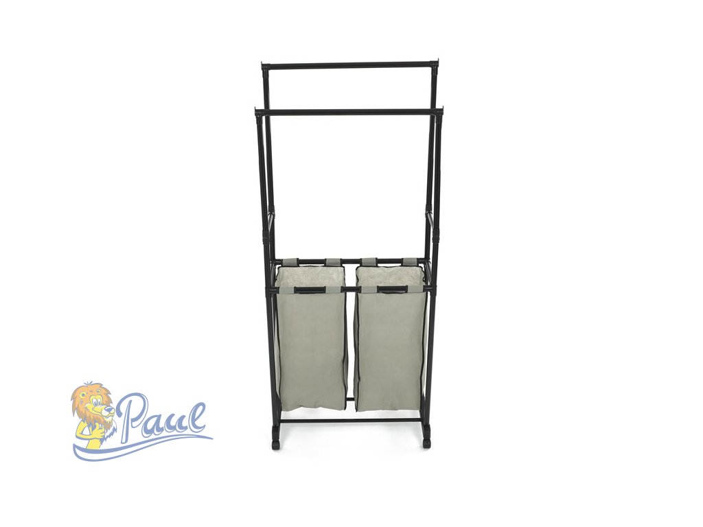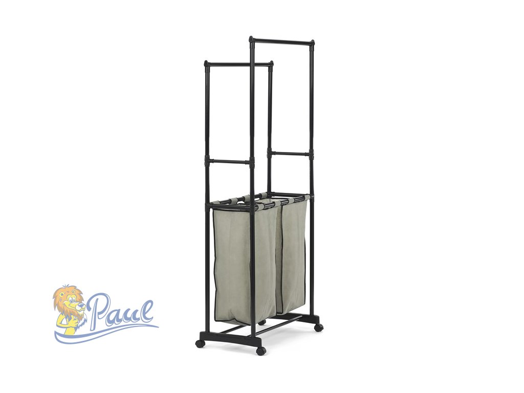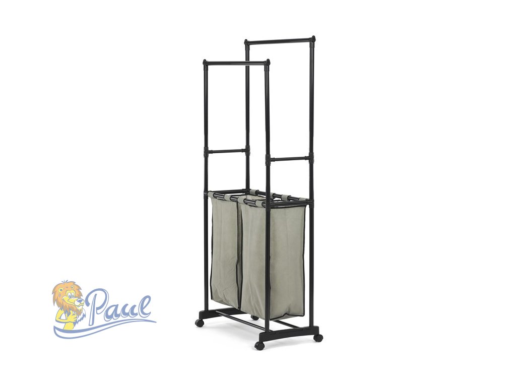 Věšák dvouramenný s košem na prádlo, černý plast.
