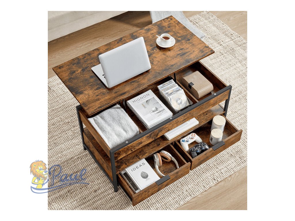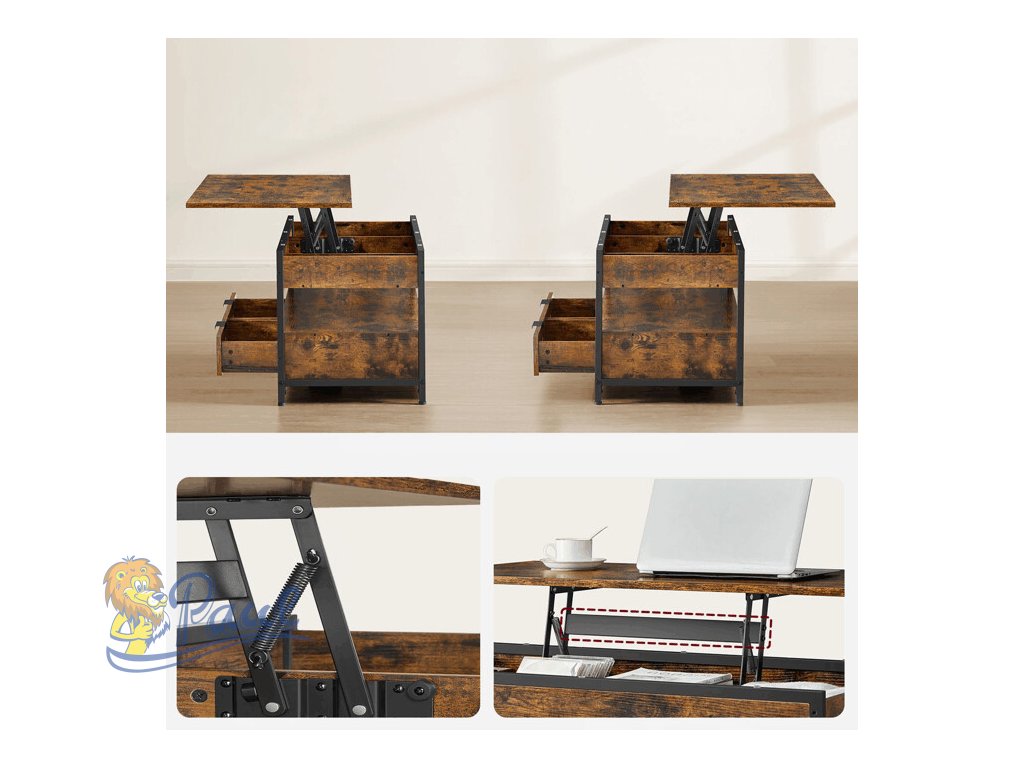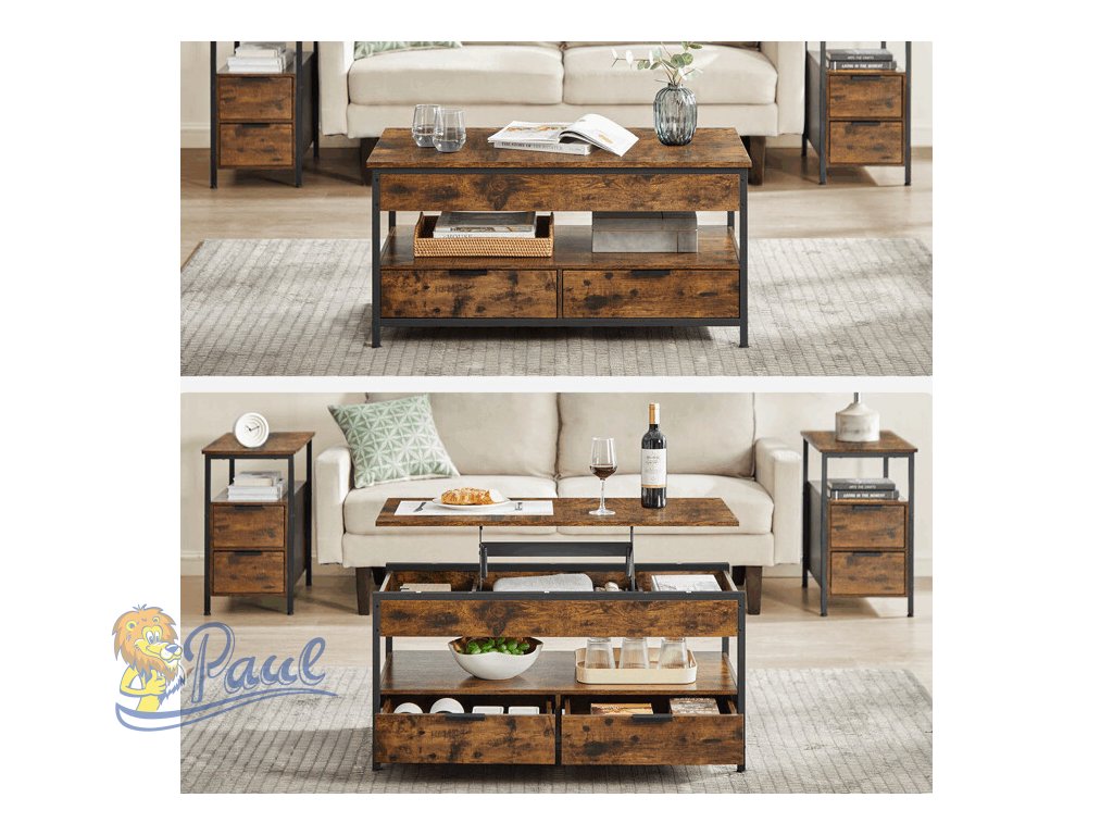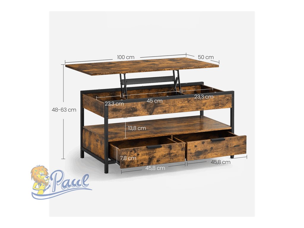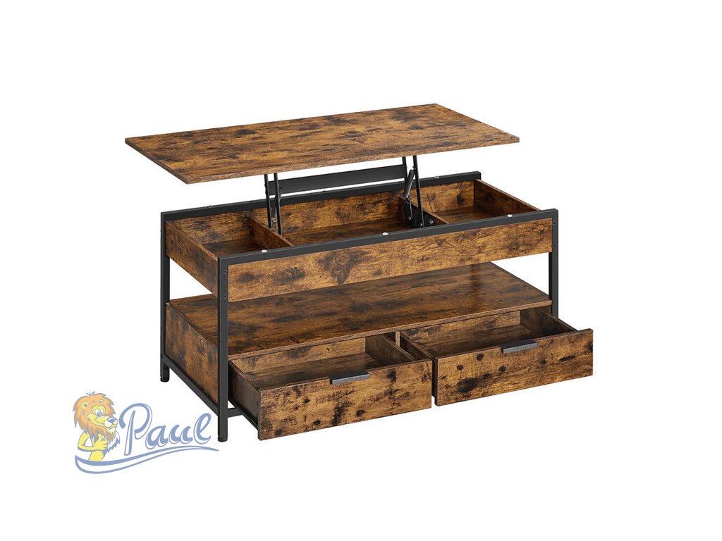 Konferenční stolek AKF-E1252 OLW kombinuje praktický úložný prostor s industriálním designem v odstínu old wood. Deska stolu je vyrobena z MDF s povrchovou úpravou připomínající staré dřevo, která dodává stolku rustikální charakter a snadnou údržbu. Pevná kovová podnož zajišťuje stabilitu a dlouhou životnost, zatímco výklopná horní deska odhaluje prostorný úložný prostor vhodný pro uložení časopisů, dálkových ovladačů nebo jiných drobností. Dvě spodní zásuvky s kovovými úchytkami doplňují funkčnost stolku a umožňují organizaci menších předmětů. Rozměry 50x100x48-63 cm poskytují dostatek prostoru pro pohodlné použití v obývacím pokoji.Doplňkové parametry