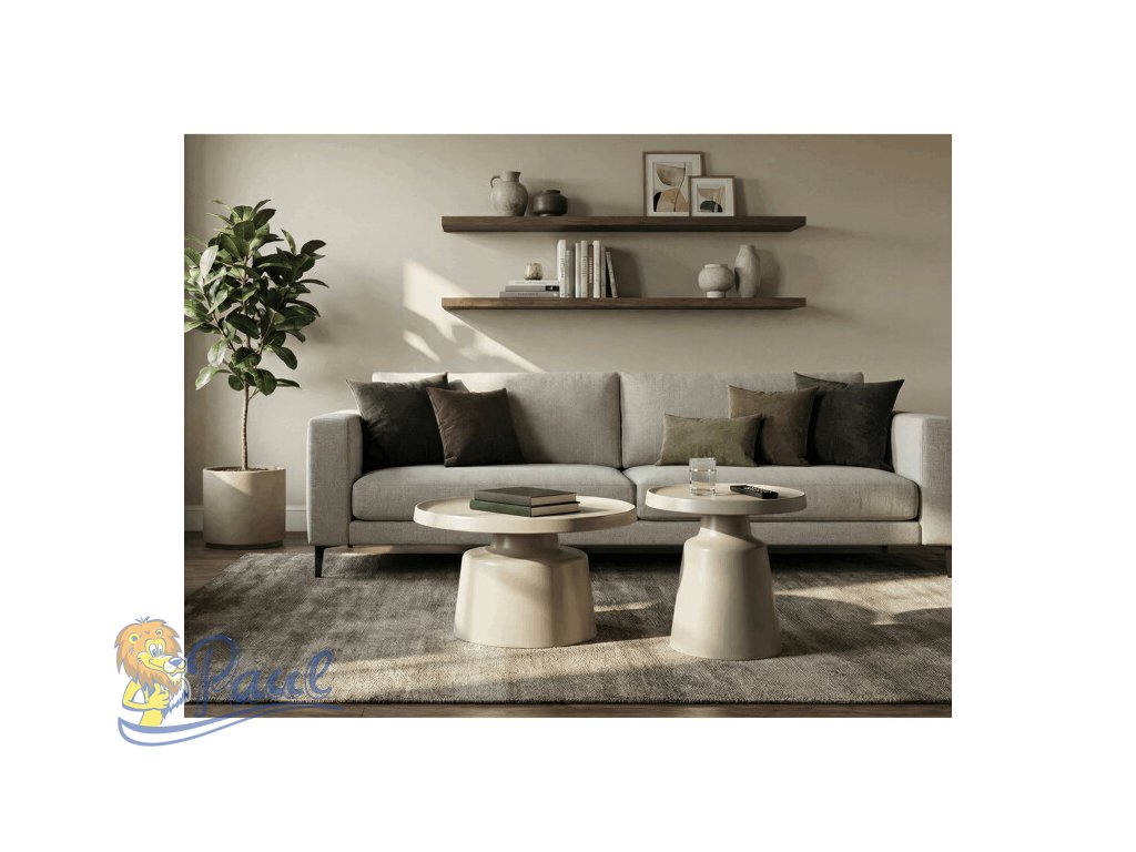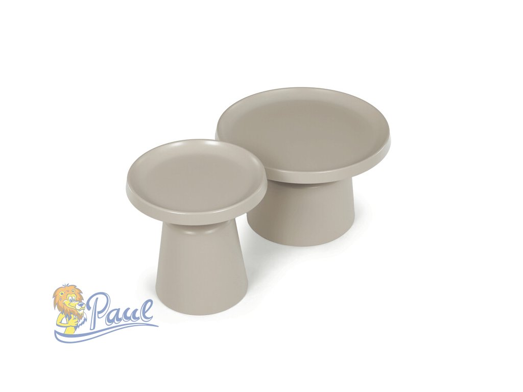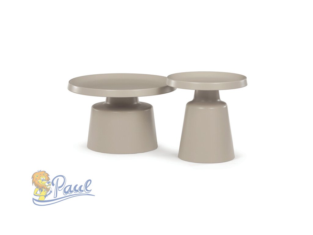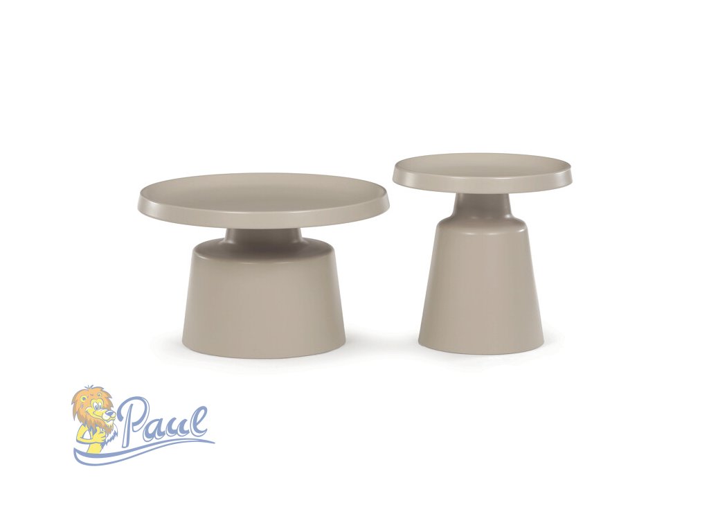 Sada dvou konferenčních stolů v béžovém matném provedení nabízí kombinaci funkčnosti a moderního designu. Obě desky i nohy jsou vyrobeny z kovu, což zajišťuje stabilitu a pevnost stolů. Stolky mají dekorativní hranu, která dodává jemný designový detail, a jejich povrch je snadno udržovatelný a odolný vůči běžnému opotřebení. Větší stůl má průměr 68,5 cm a výšku 43 cm, menší stůl průměr 49 cm a výšku 50,5 cm, což umožňuje variabilní uspořádání v prostoru. Díky svému neutrálnímu odstínu béžové barvy se hodí do různých interiérů.Doplňkové parametry