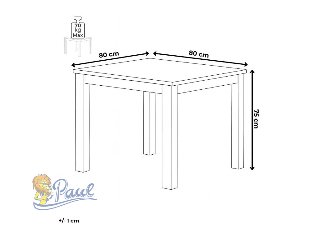 Jídelní stůl 80x80x75 cm, masiv dub bílý, povrchová úprava olejem, nohy 8x8 cm