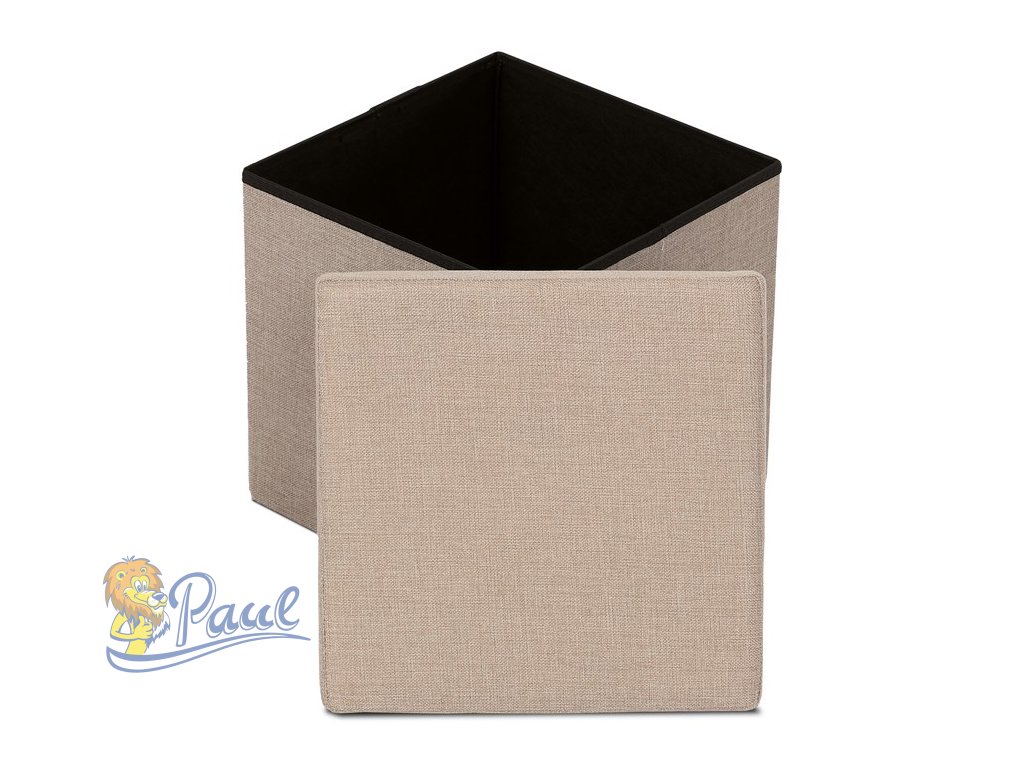 Taburet s úložným prostorem, béžová, látka, TAB-461 CRM2