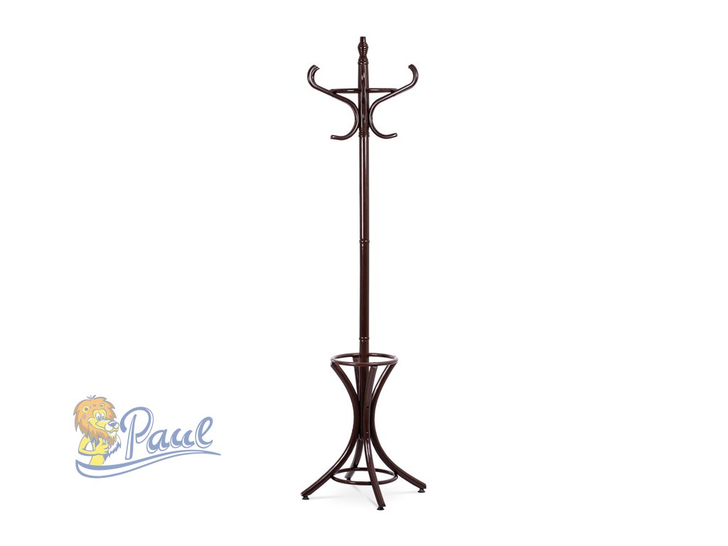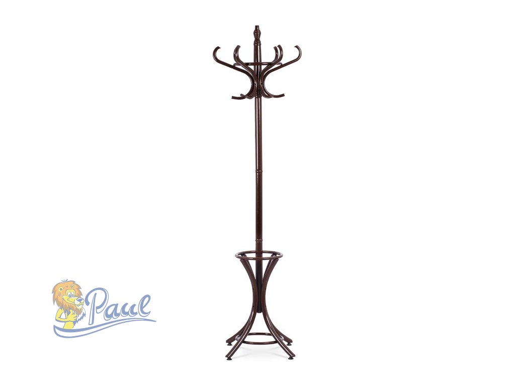 Věšák dřevěný stojanový, masiv topol a bříza, tmavě hnědý lak, výška 185 cm