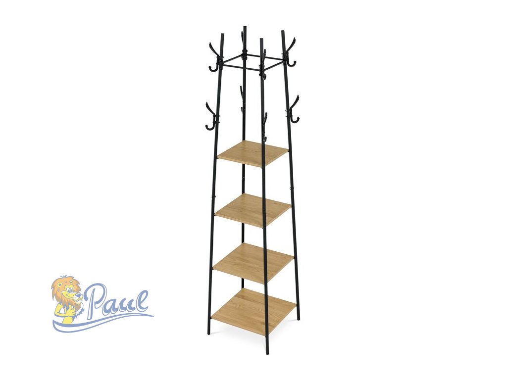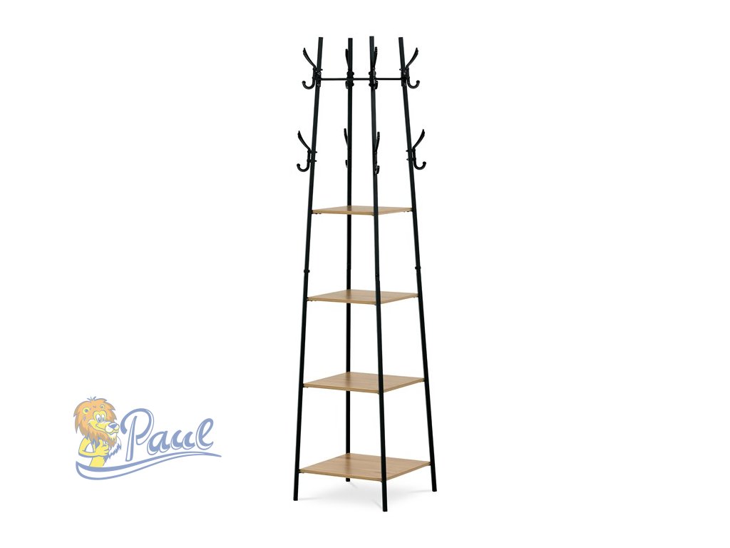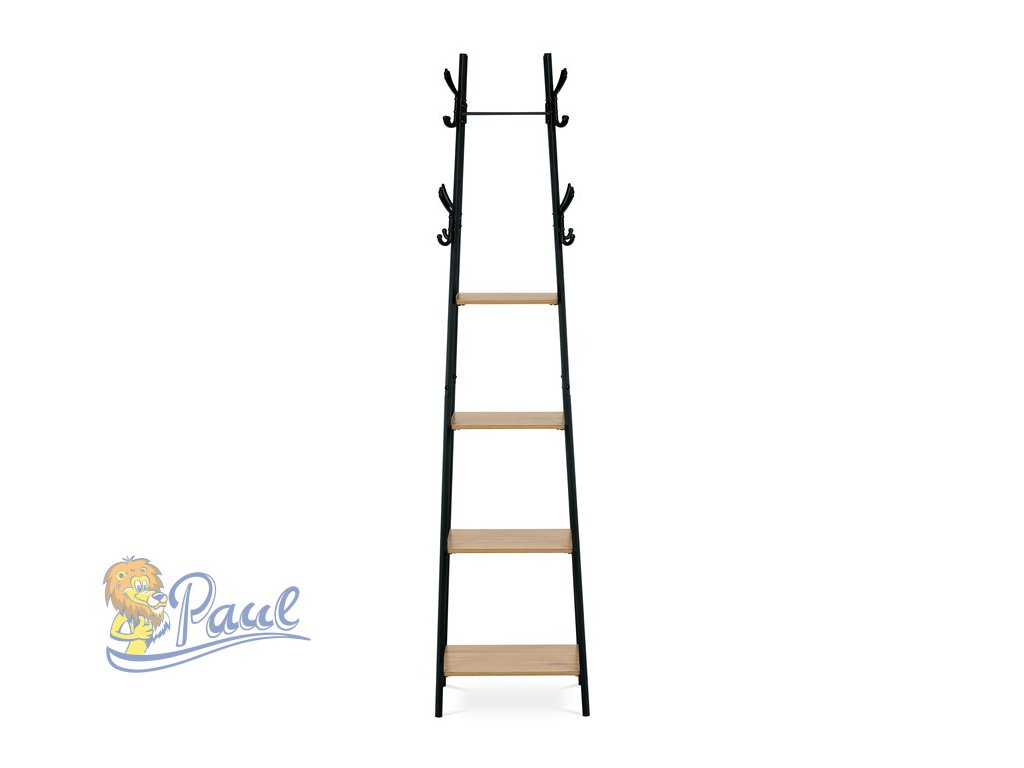 Věšák se 4 policemi, dekor divoký dub, MDF, černý lak