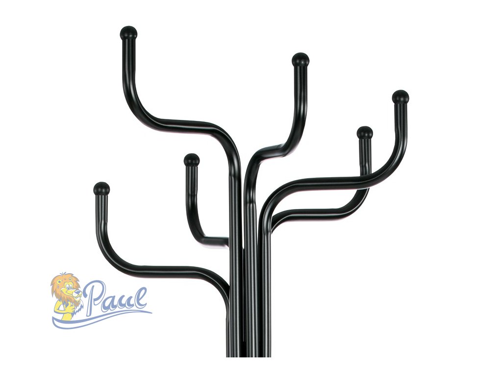 Věšák stojanový, kovová konstrukce, černý matný lak, výška 188 cm, nosnost 12 kg