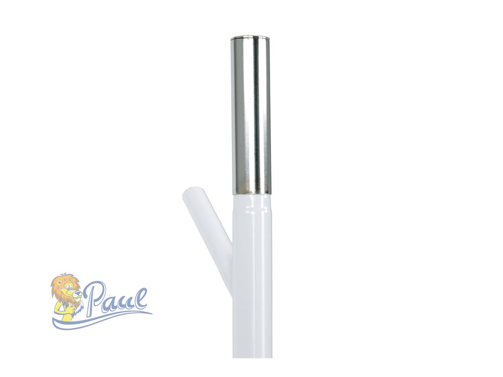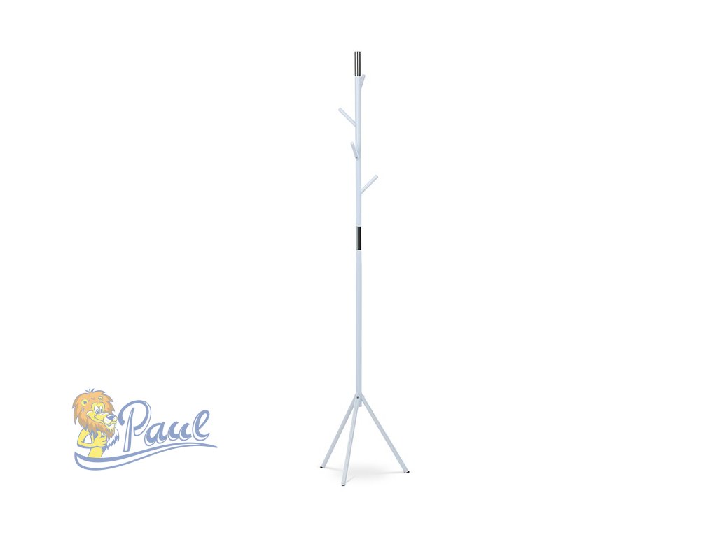 Věšák stojanový, výška 179 cm, kovová konstrukce, bílý matný lak, nosnost 6 kg