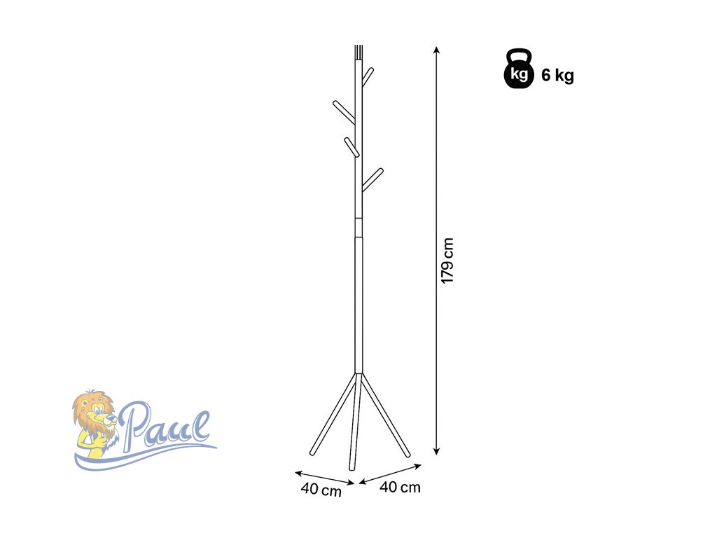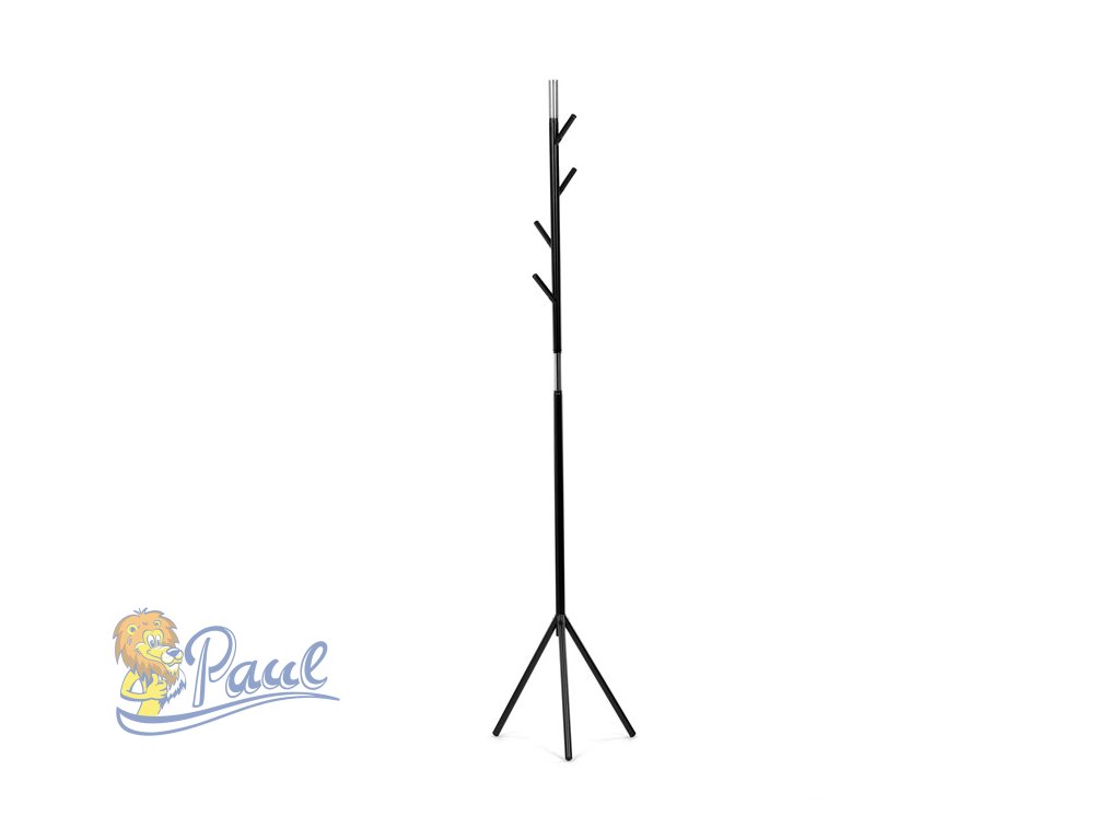 Věšák stojanový, výška 179 cm, kovová konstrukce, černý matný lak, nosnost 6 kg
