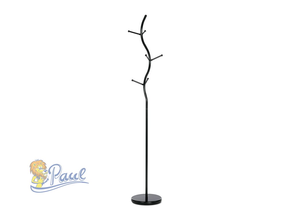 Věšák stojanový, výška 180 cm, kovová konstrukce, černý matný lak, nosnost 10 kg