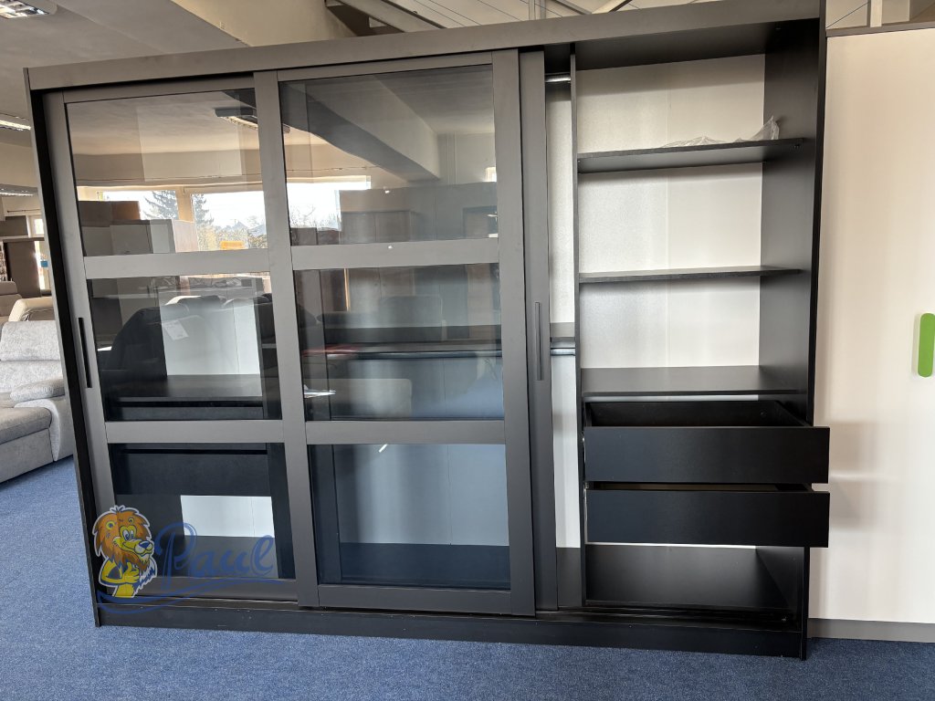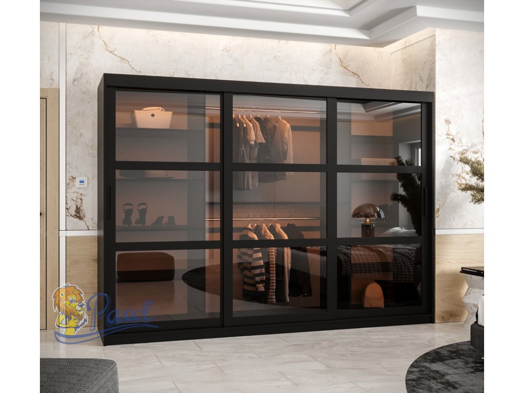 Šatní skříň Abi Dome - šířka 250 cm - černá/černá + 2x zásuvky