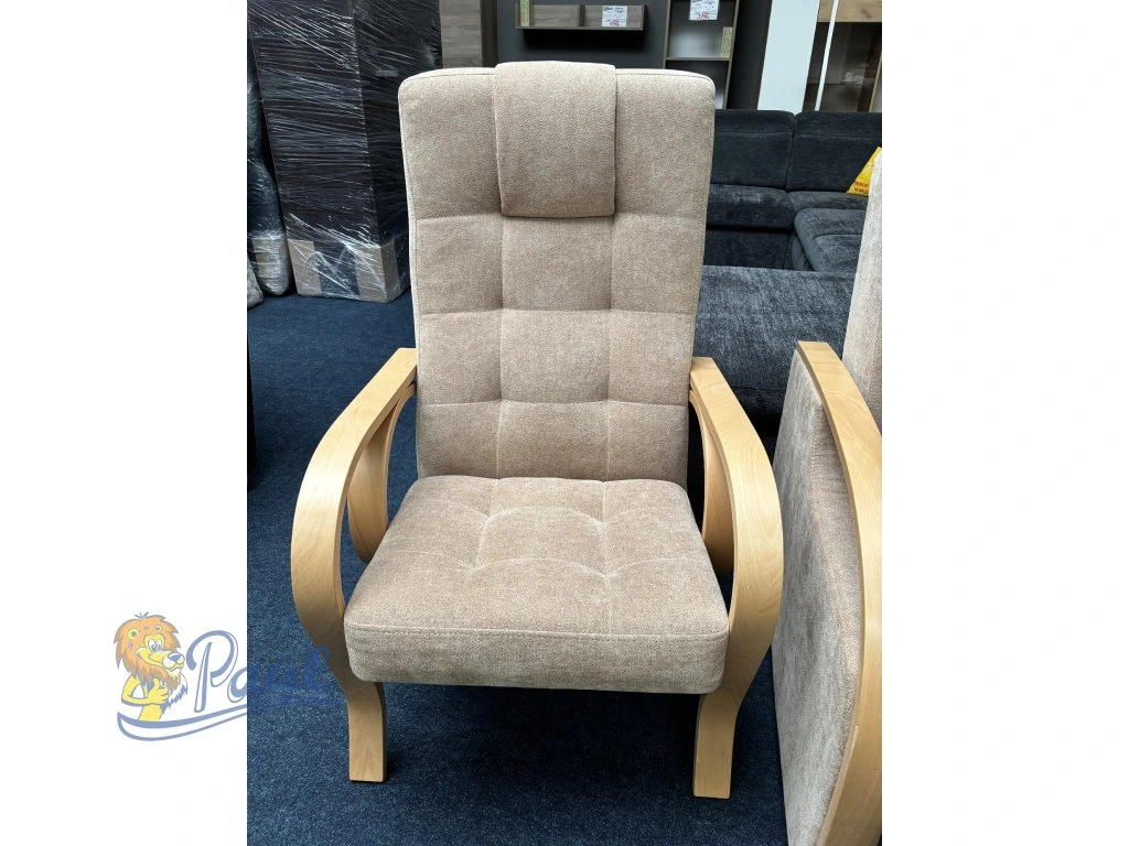 - Upozornění: Pohovka má lehce promáčklý sololit a odřené dřevo područky - viz. fotografie