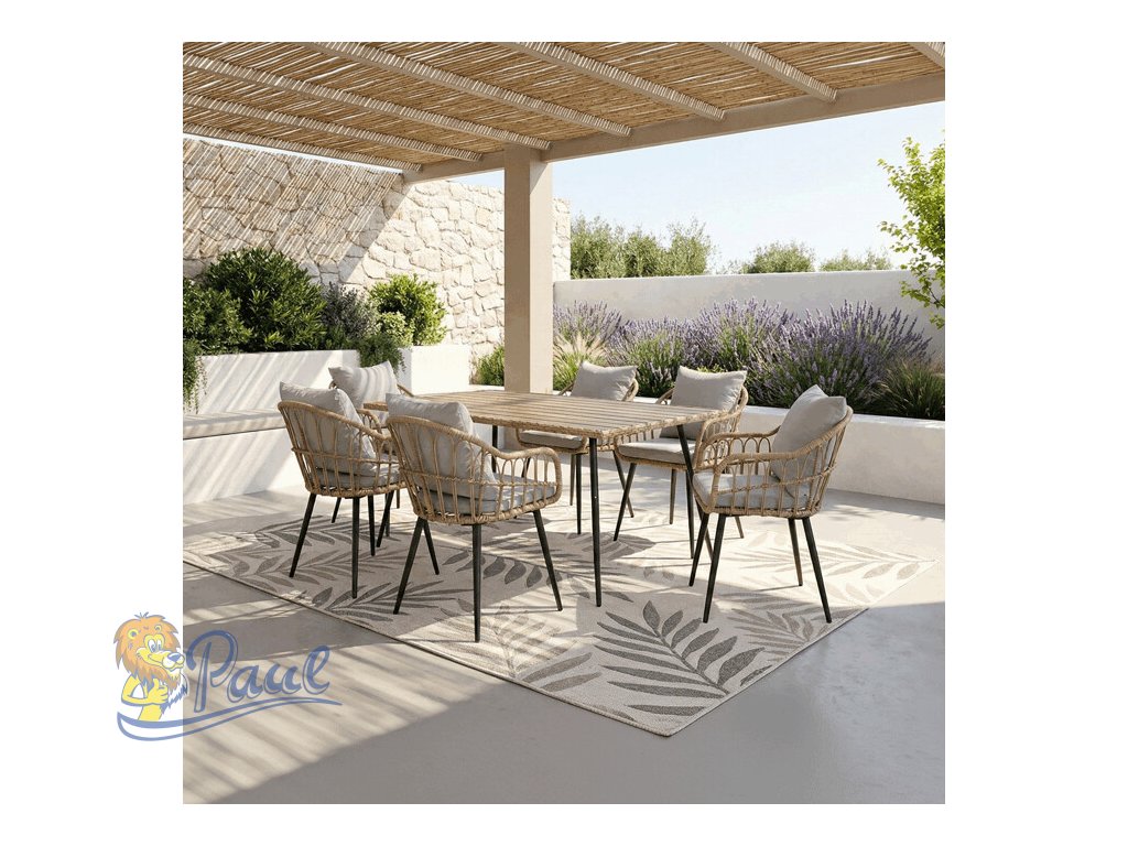 Stůl zahradní 160x95x74, kov s umělým ratanem, deska polywood