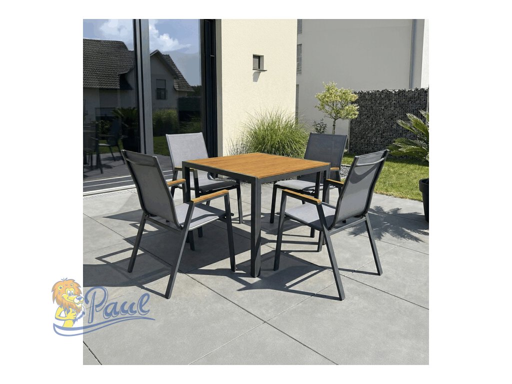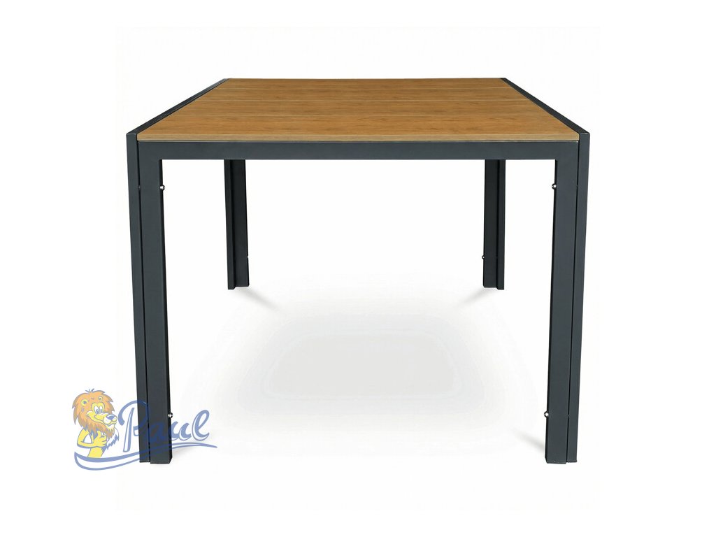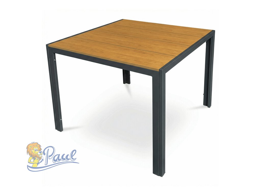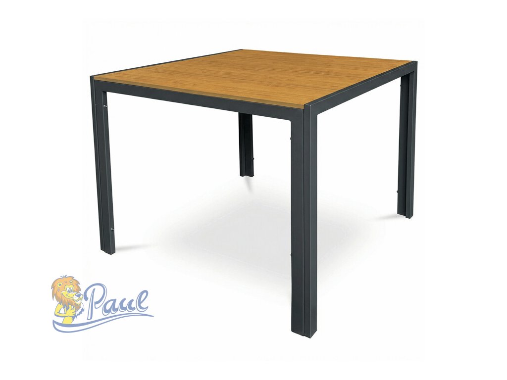 Stůl zahradní 90x90x73, deska polywood v dekoru dubu, šedá kovová konstrukce