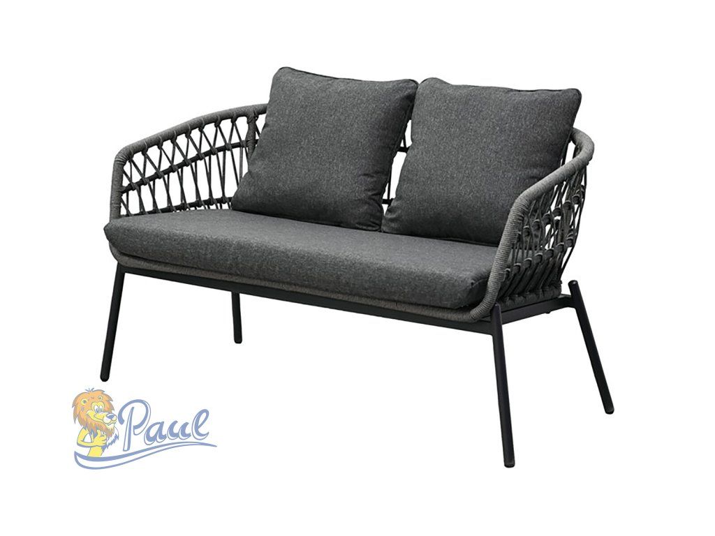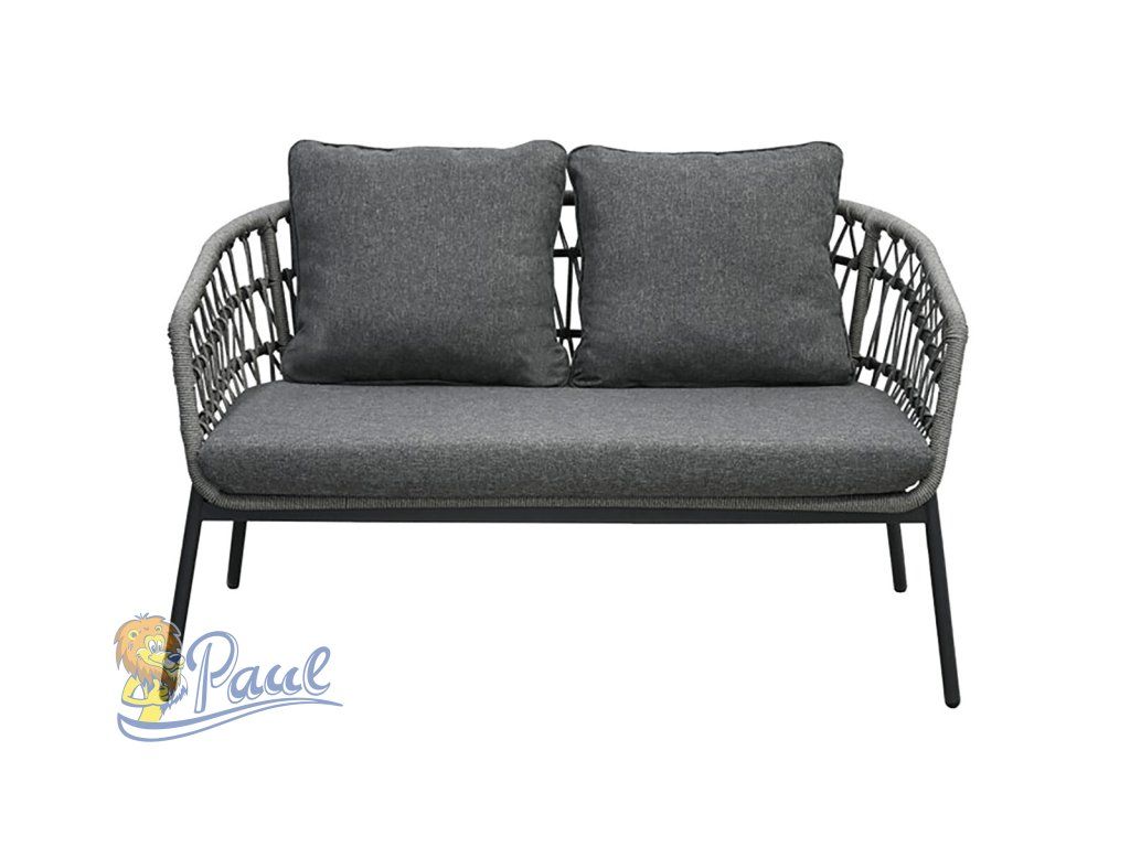 Zahradní set 1+1+2, stůl 90x48, židle a dvojsedačka, Antracitový umělý ratan, kov antracit, tmavě šedá látka.