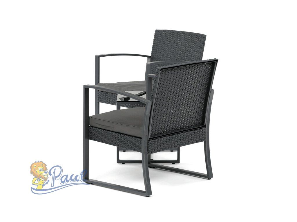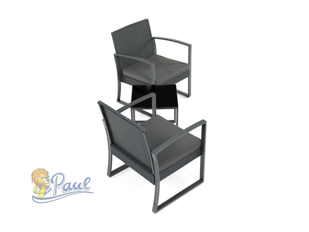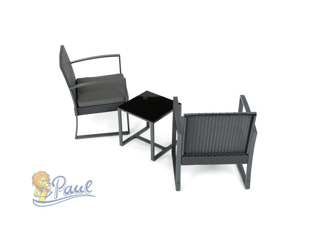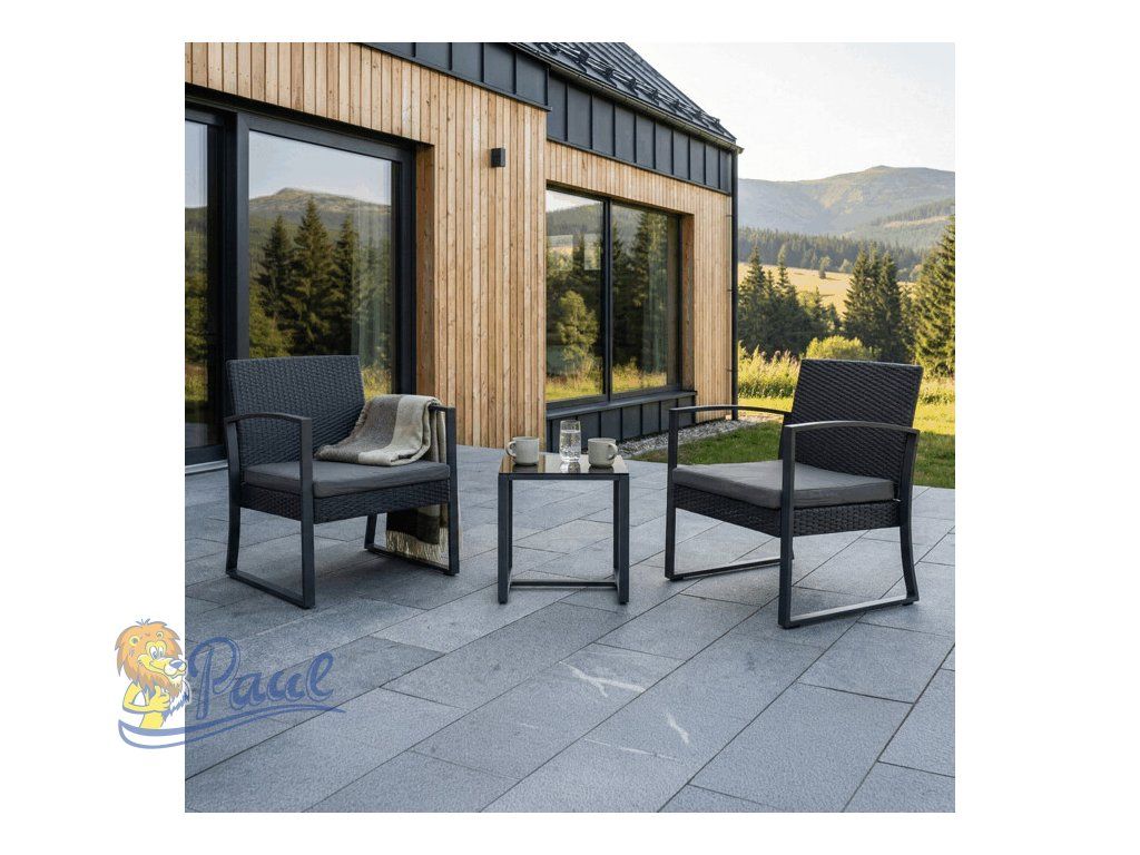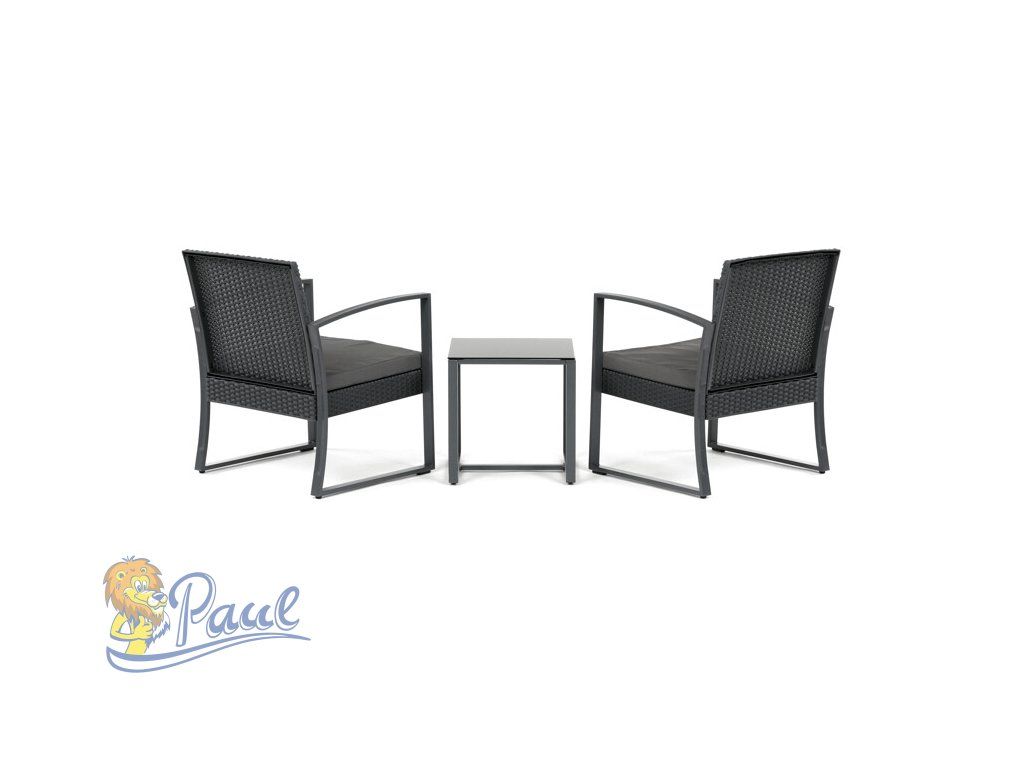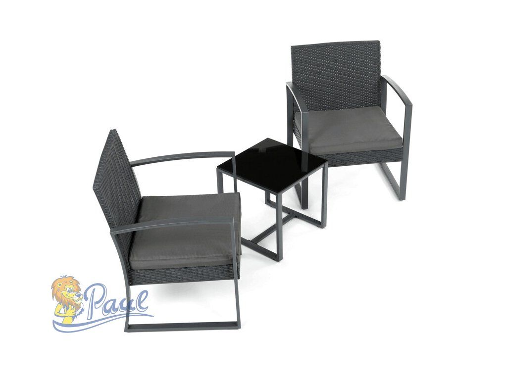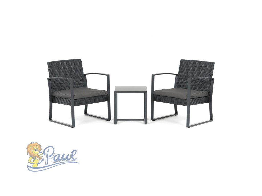 Zahradní set 1+2 v šedém provedení kombinuje pevnou kovovou konstrukci s odolným polyratanem, který je vhodný pro venkovní použití. Součástí jsou dvě pohodlná křesla s polstrovanými sedáky potaženými šedou látkou, která zajišťují komfortní posezení. Stolová deska je vyrobena z černého tvrzeného skla, které je snadno udržovatelné a dodává celému setu moderní vzhled. Stabilní rám z kovu zaručuje dlouhou životnost a bezpečnost při užívání. Díky kompaktním rozměrům je set ideální pro balkóny, terasy či menší zahrady.Doplňkové parametry