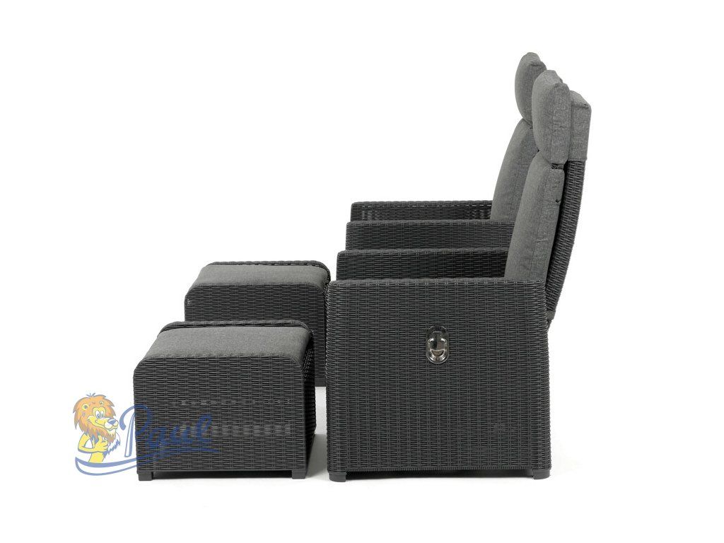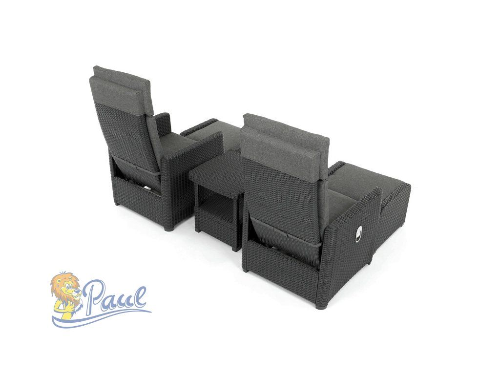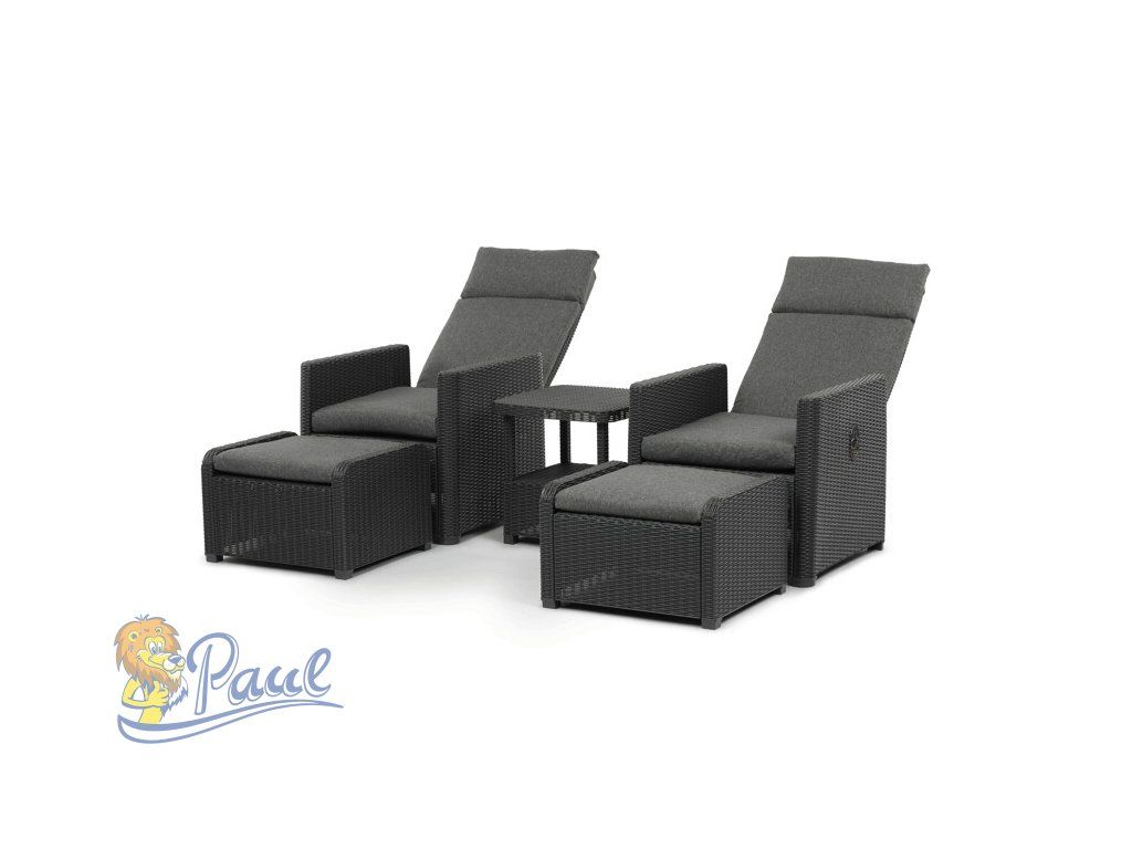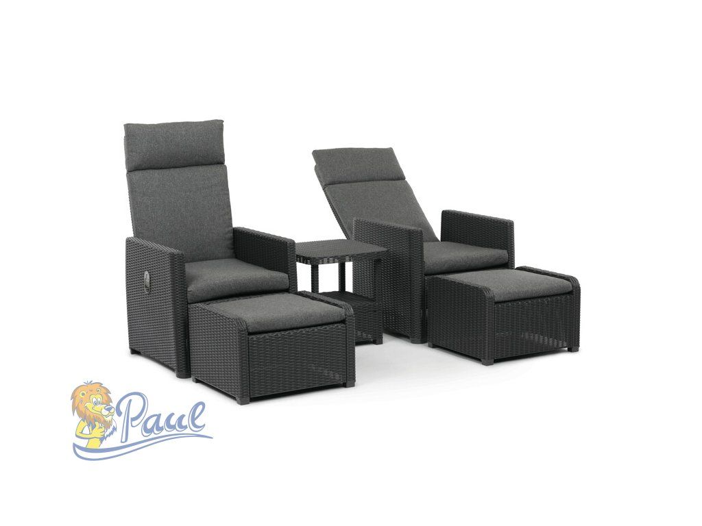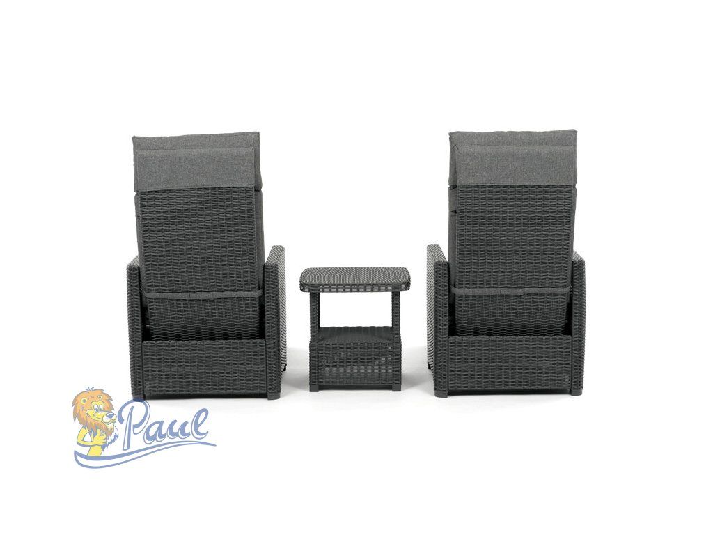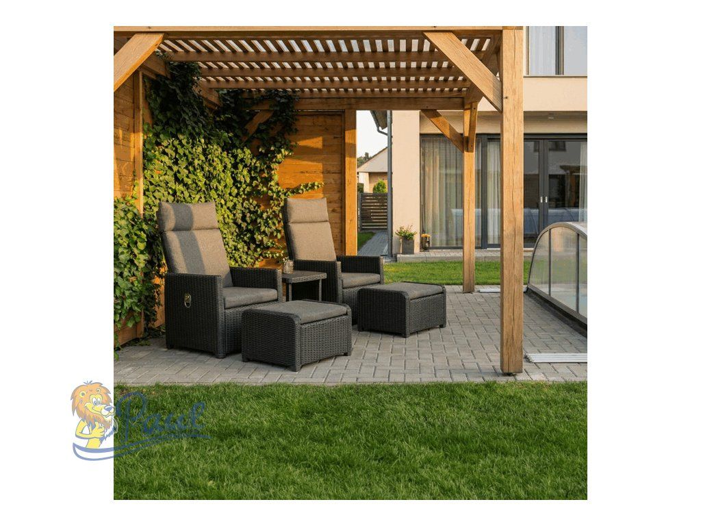 Zahradní set 1+2 v šedém provedení kombinuje pevný kovový rám s výplní z polyratanu které zajišťuje snadnou údržbu a dlouhou životnost i při venkovním použití. Sada obsahuje dvě polohovací křesla s nastavitelným sklonem opěradla pro maximální komfort a dva bonusové taburety, které lze využít jako podnožky nebo další sedací plochy. Součástí je také praktický stolek s deskou z umělého ratanu, který doplňuje celkový vzhled a funkčnost setu. Ideální volba pro relaxaci na zahradě, terase či balkóně.Doplňkové parametry