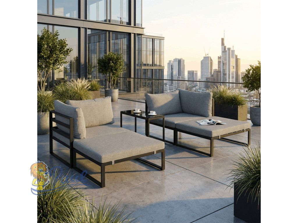 Moderní zahradní sestava značky Autronic je dokonalým řešením pro váš venkovní prostor. Sestava je multifunkční a umožňuje variabilní uspořádání podle vašich potřeb. Pevná kovová konstrukce s práškovou povrchovou úpravou v antracitových barvách je doplněna pohodlnými světle šedými látkovými sedáky, které jsou pevně připevněny ke konstrukci pro maximální stabilitu. Deska stolku z tvrzeného skla dodává sestavě elegantní vzhled, zatímco moderní design zaručuje stylový doplněk do vaší zahrady nebo na terasu. Set je tvořen čtyřmi samostatnými moduly, které lze skládat do libovolných uskupení. Součástí setu jsou dva otomany, dvě křesla a stolek. Jednotlivé části můžete sestavit tak, jak zrovna potřebujete. Rozměry křeslo: 65 × 90 × 75 cm (v x š x h) Rozměry otoman: 37 × 87 × 72 cm (v x š x h) Rozměry stolek: 50 × 75 × 30 cm (v x š x h) Tento set kombinuje komfort a odolnost, ideální pro relaxaci i posezení s přáteli.Doplňkové parametry